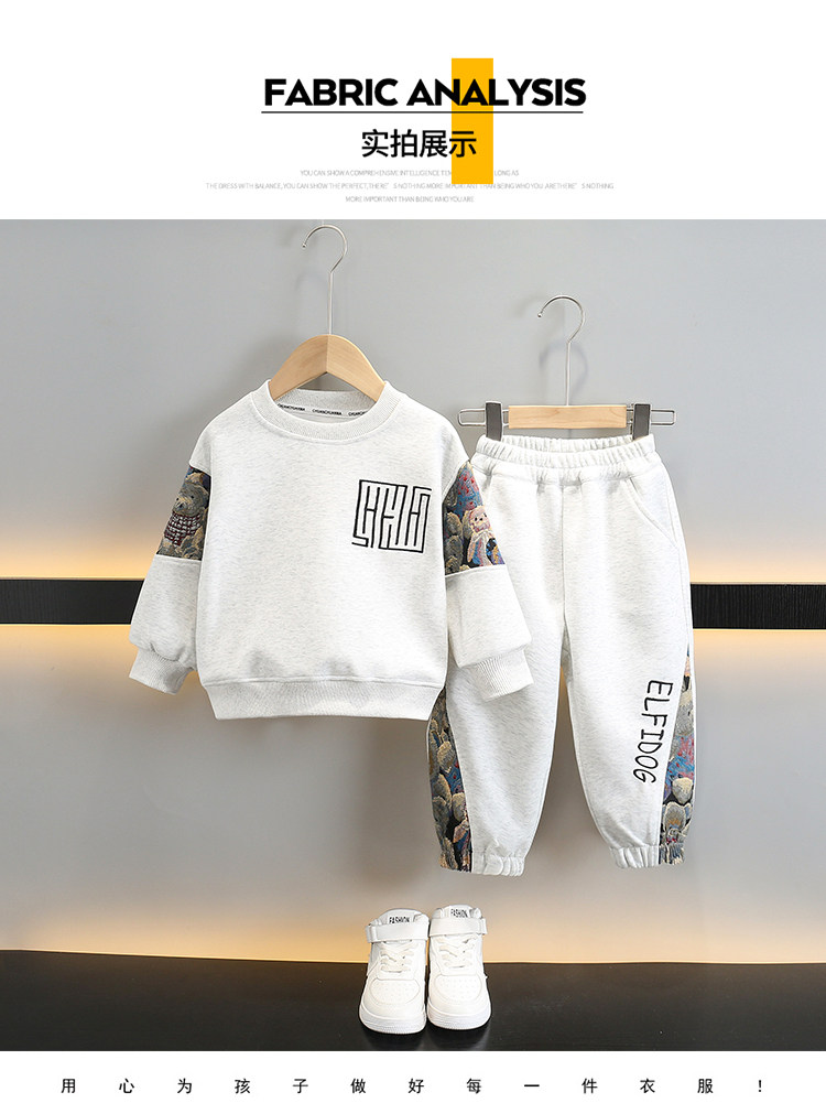 Dhwa British Co-Branded Boys' Spring and Autumn Suit 2025 New Style Small and Medium-Sized Children's Sweatshirt Two-Piece Set Autumn Casual Children's Clothing
