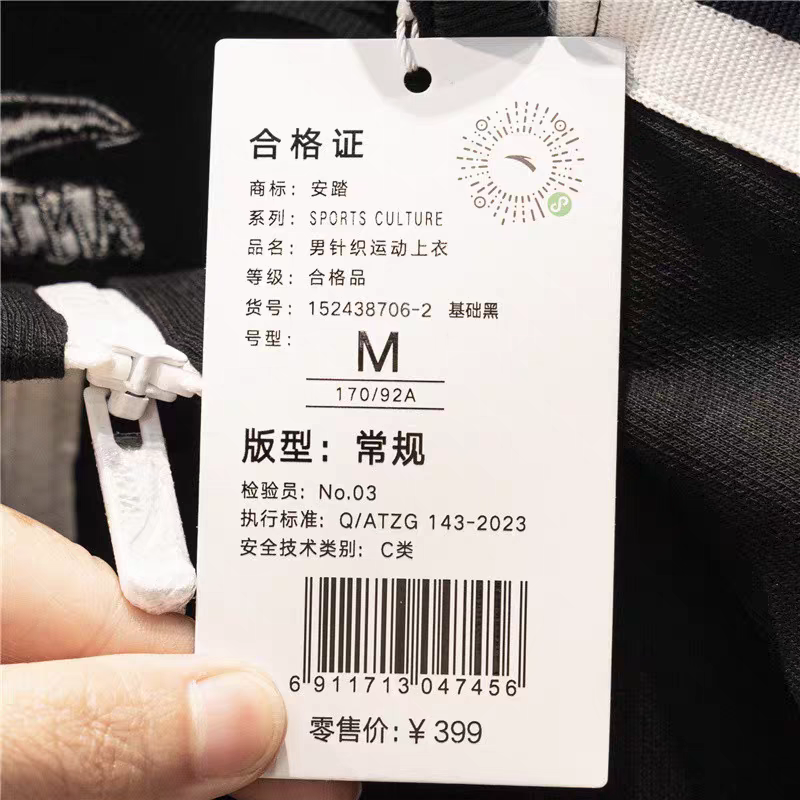 Anta Men's Spring and Autumn Tech Stand Collar Knitted Training Sports Top 152438706