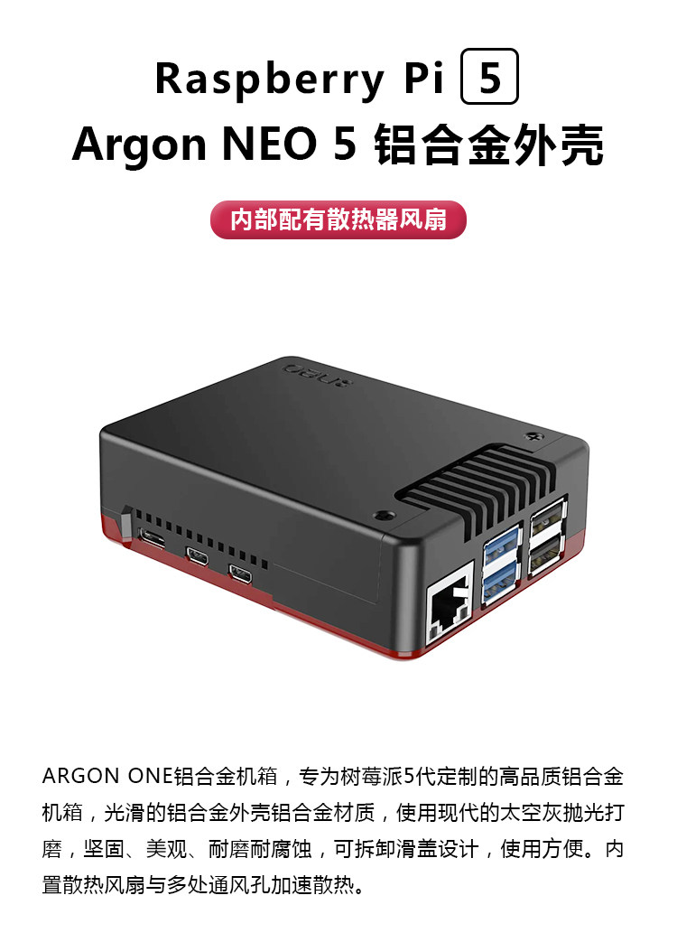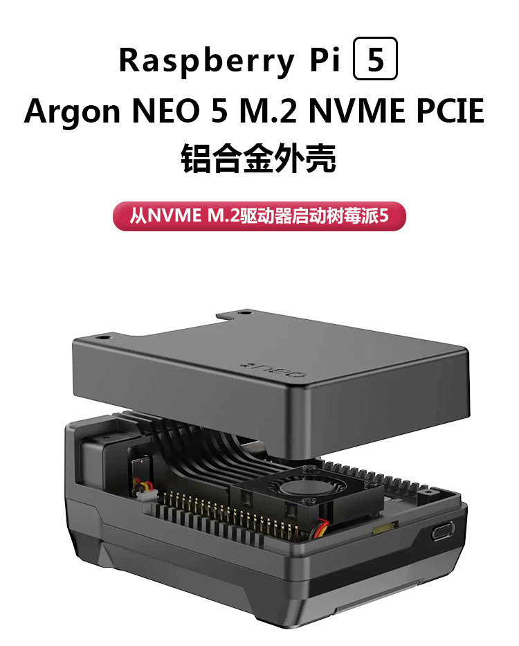 Raspberry Pi 5Th Generation Argon Neo 5 Aluminum Alloy Case with Passive Cooling and Active Pwm Cooling Fan
