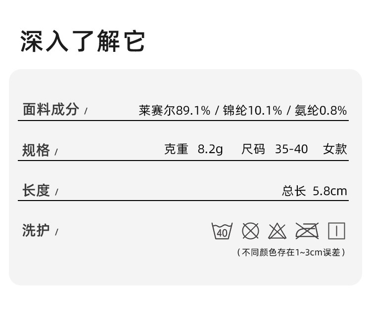 Fabric Material Composition Lyocell Fiber (Lyocell) 89.1% Polyamide Fiber (Nylon) 10.1% Polyurethane Elastic Fiber (Spandex) 0.8%