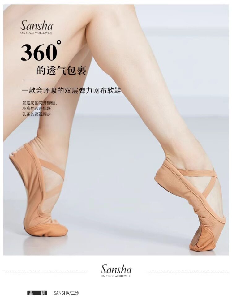 Sansha Ballet Dance Shoes Ethnic Dance Cat Claw Shoes Elastic Mesh Practice Soft Shoes Gymnastics Practice Shoes