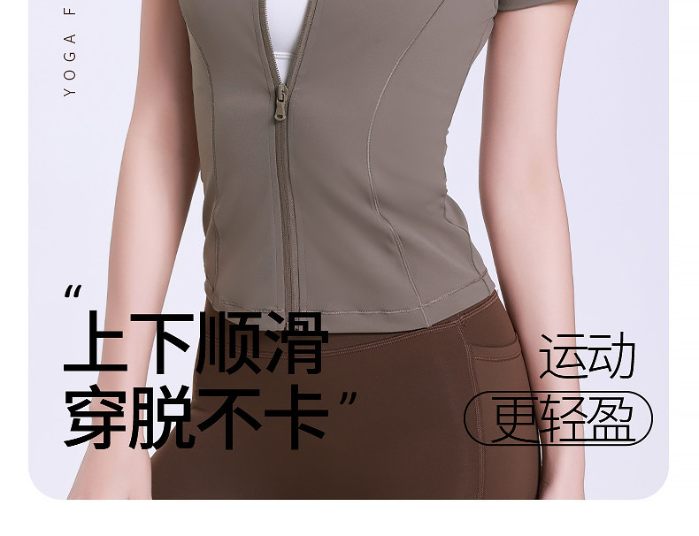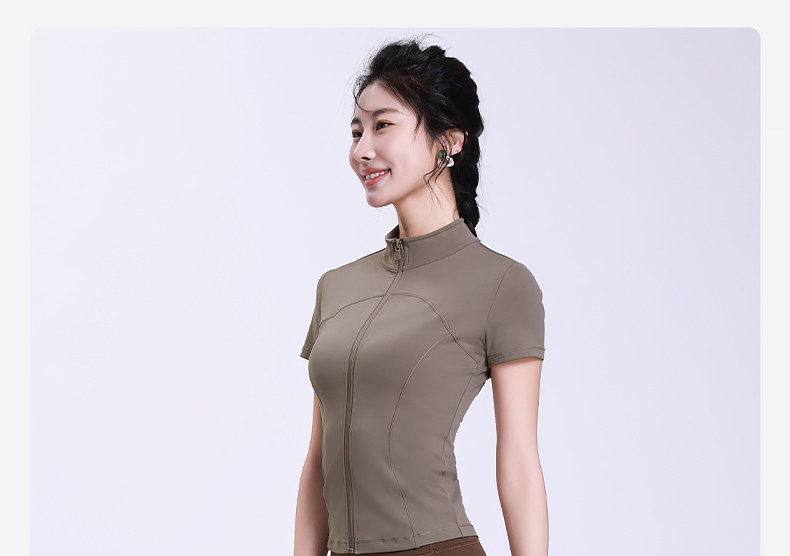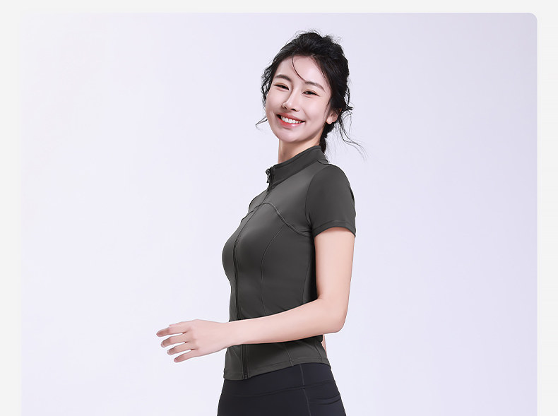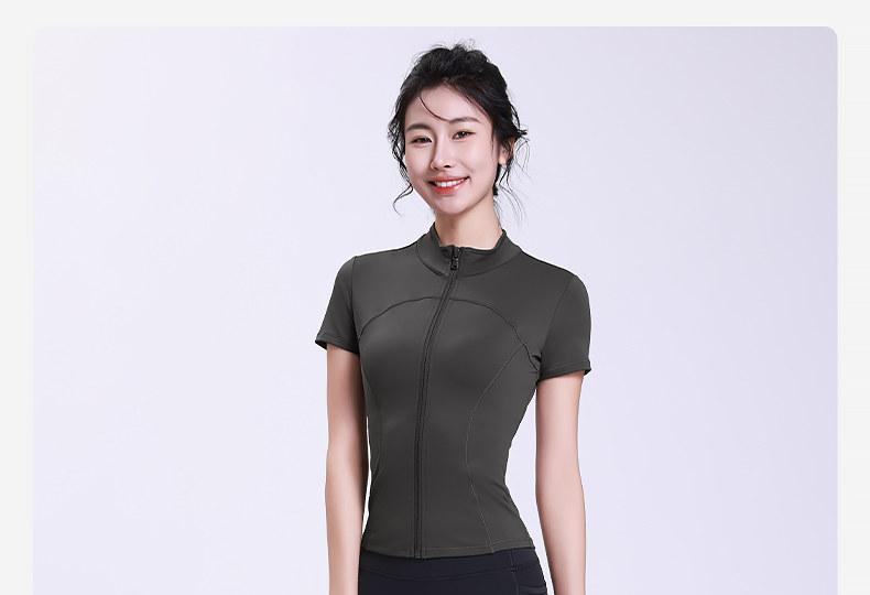 Fanmeiren Yoga Wear Women's Thin Short-Sleeve Jacket Top with Zipper Slimming Professional Pilates Training Fitness Wear