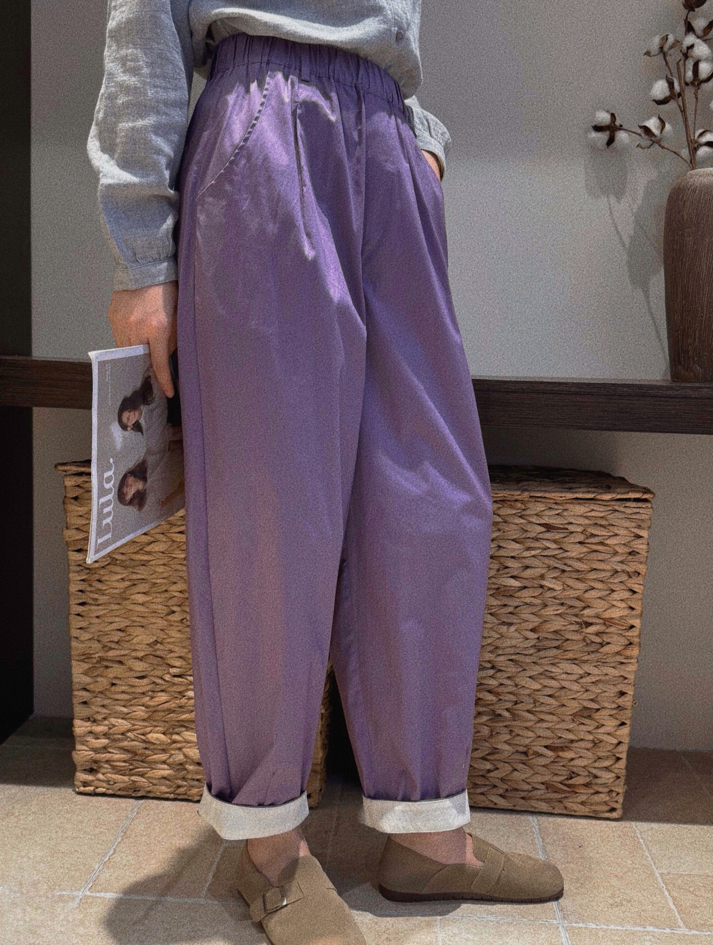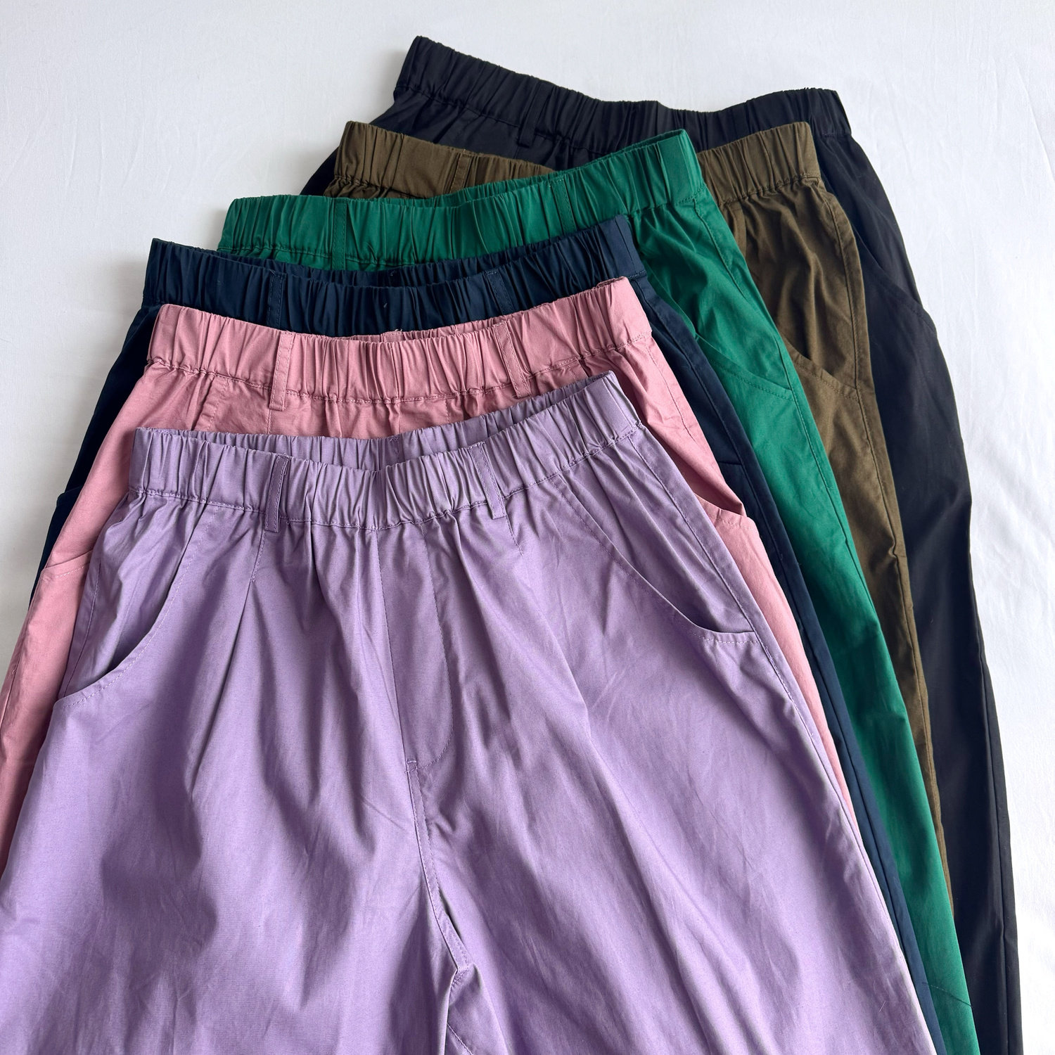 Japanese Order Spring/Summer Elastic Waist Loose Simple Versatile Thin Candy Color Cuffed Women's Casual Pants Carrot Pants