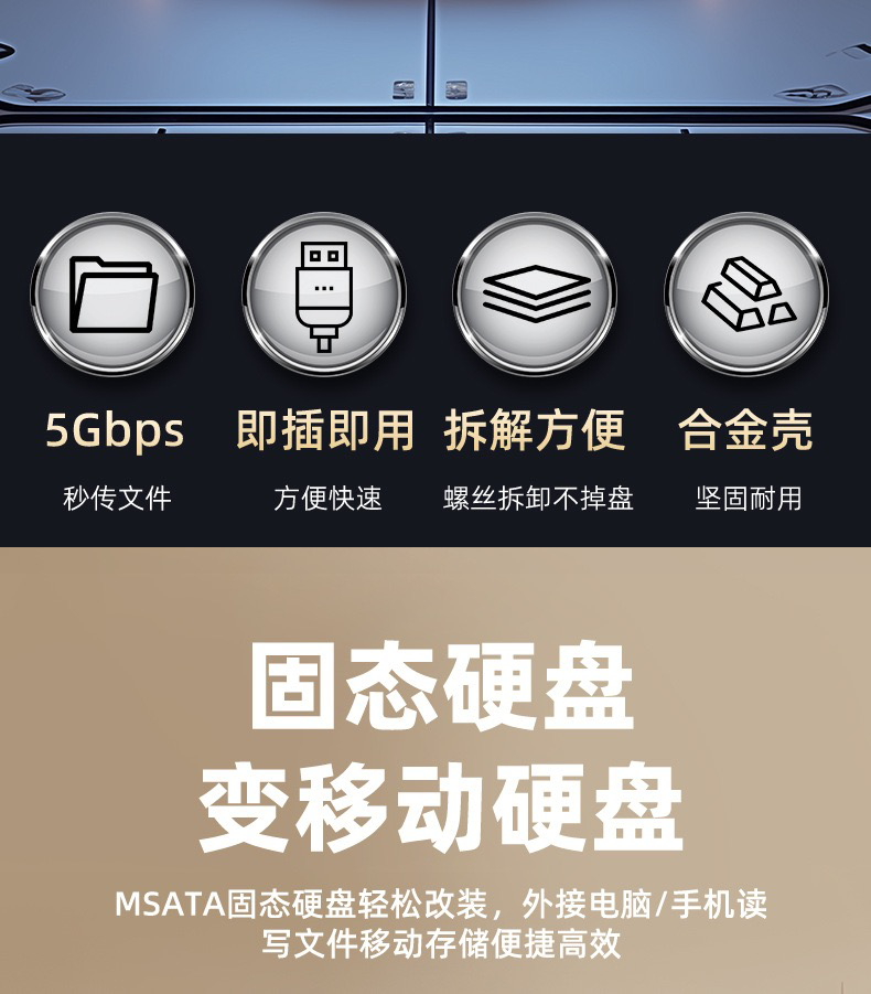 Fulu Zhu Msata3.1 Ssd Solid State Drive Enclosure External USB to Type-C3.1 Hard Drive Enclosure Msata/M2Ngff to Sata Interface M.2 Modification 2.5inch Solid State Drive Enclosure