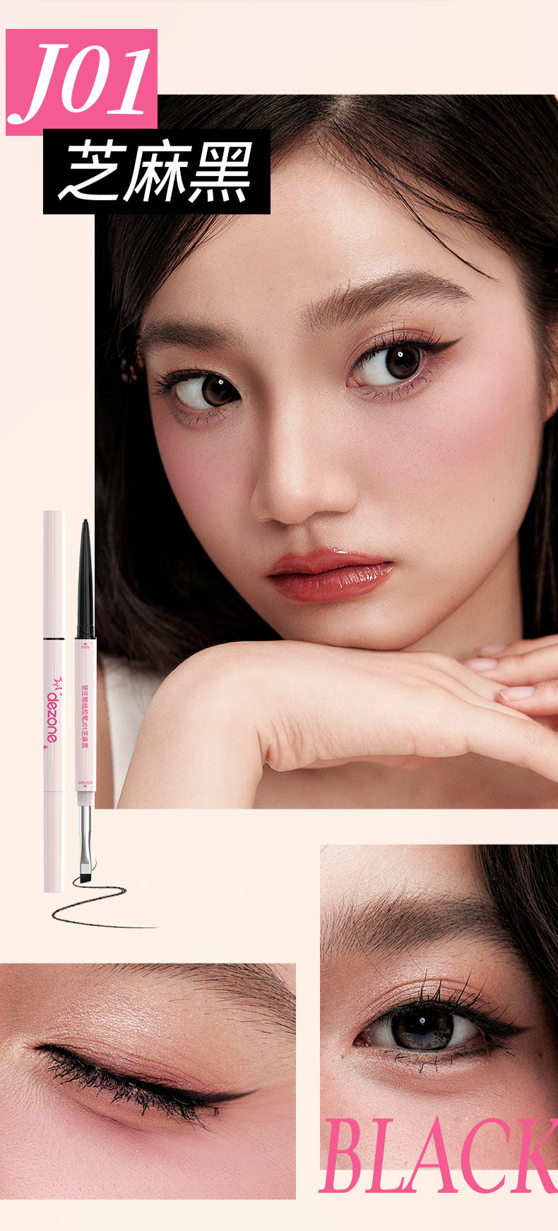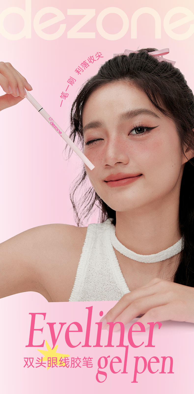 DEZONE Ultra-Fine Gel Eyeliner Pens with Built-In Blade Brush, Silky Smooth, Waterproof, Long-Lasting and Not Easy to Fade