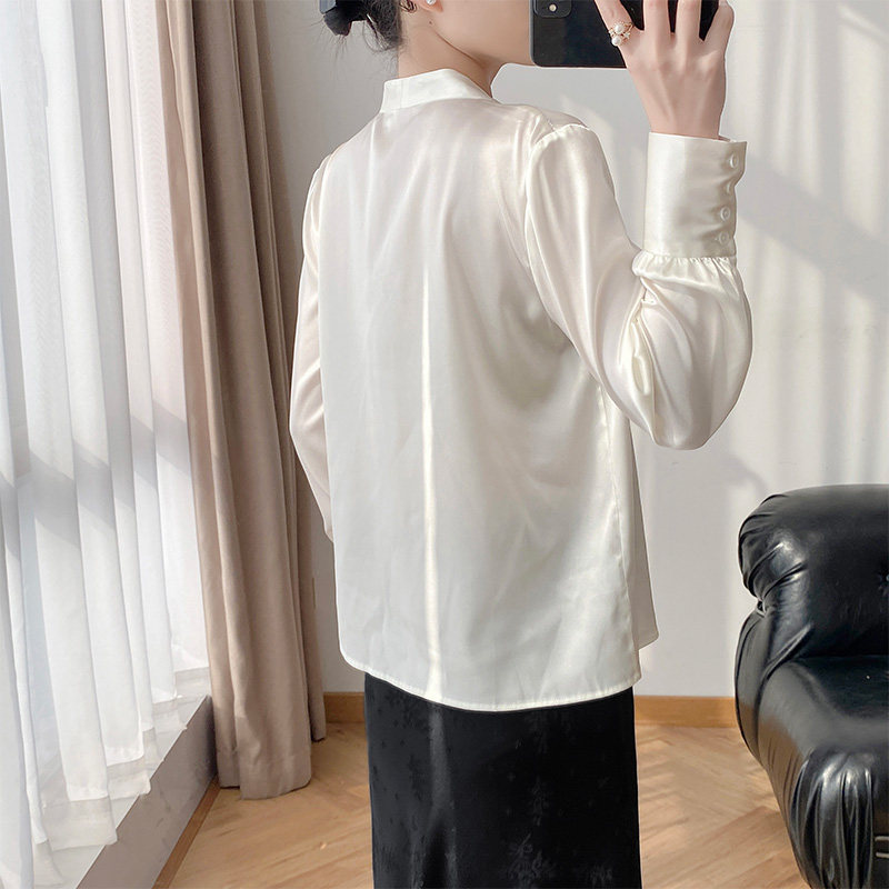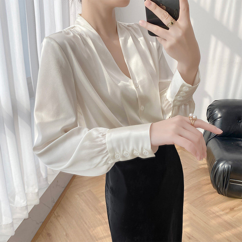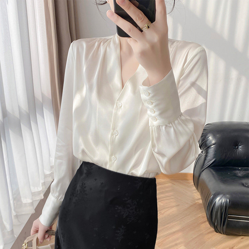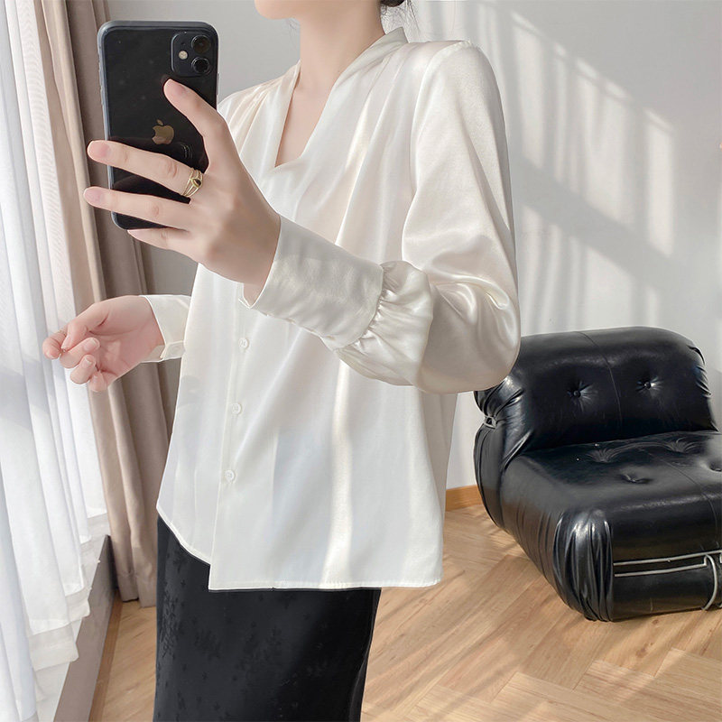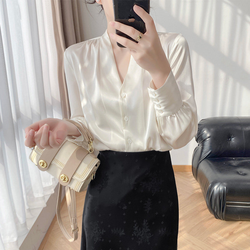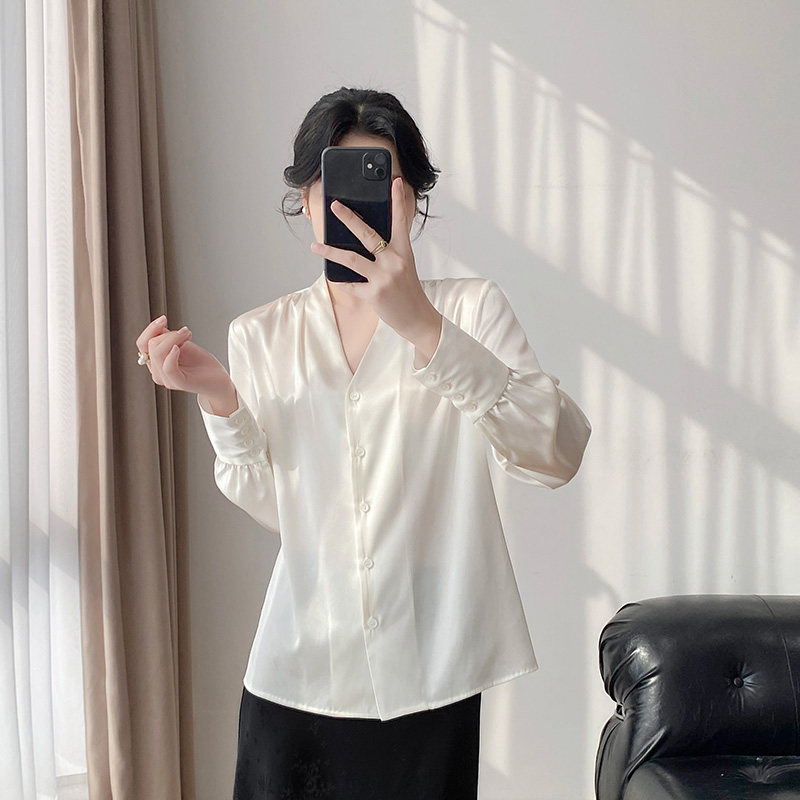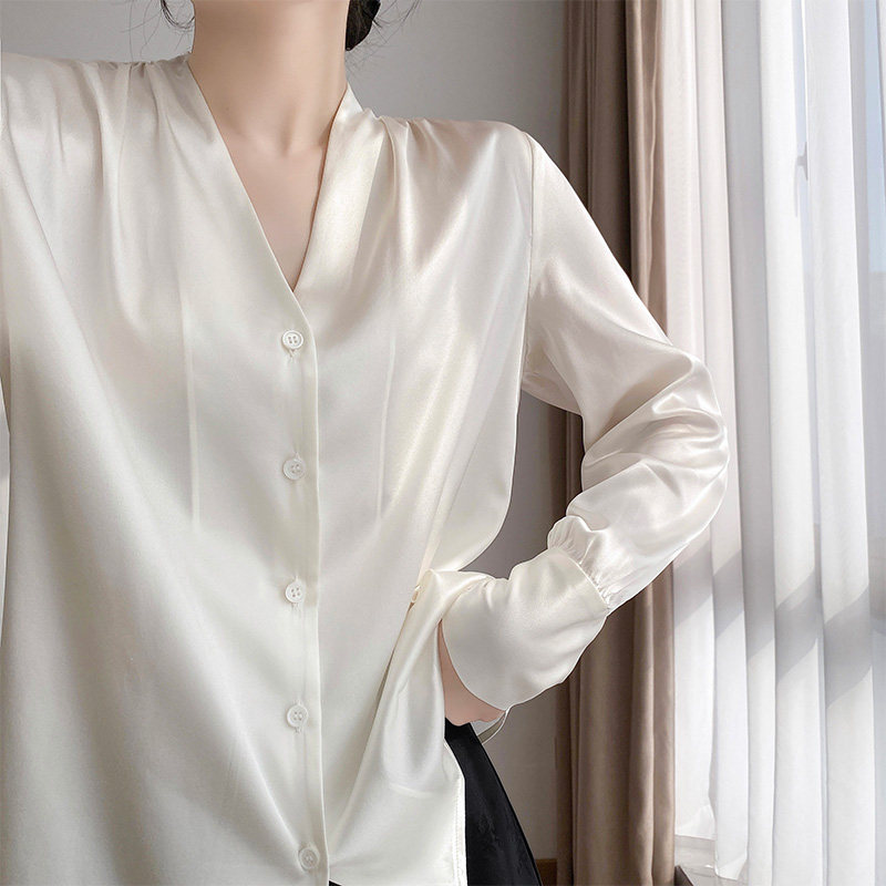 Lingze X19 Mumi Mulberry Silk Top 2026 Spring/Summer New Style Elegant V-Neck Silk White Shirt for Women