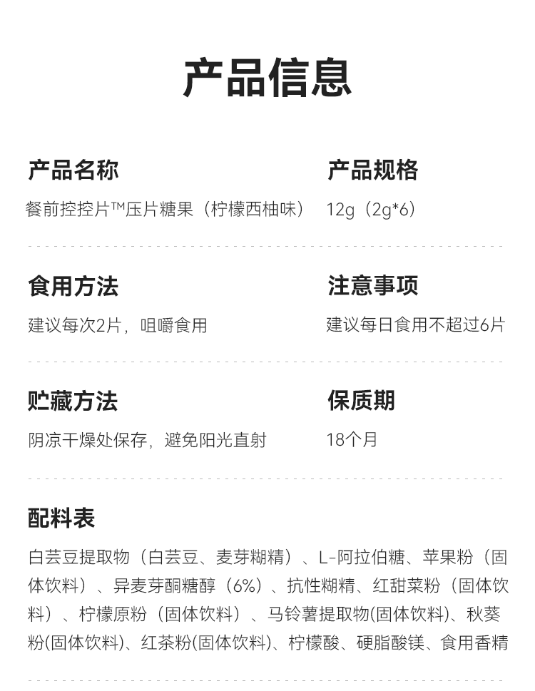 Taste Pre-Meal Control Tablets