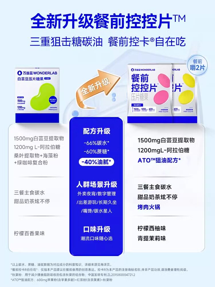 Wonderlab Pre-Meal Control Tablets White Kidney Bean Chewable Tablets Sugar and Carbohydrate Savior Dietary Fiber