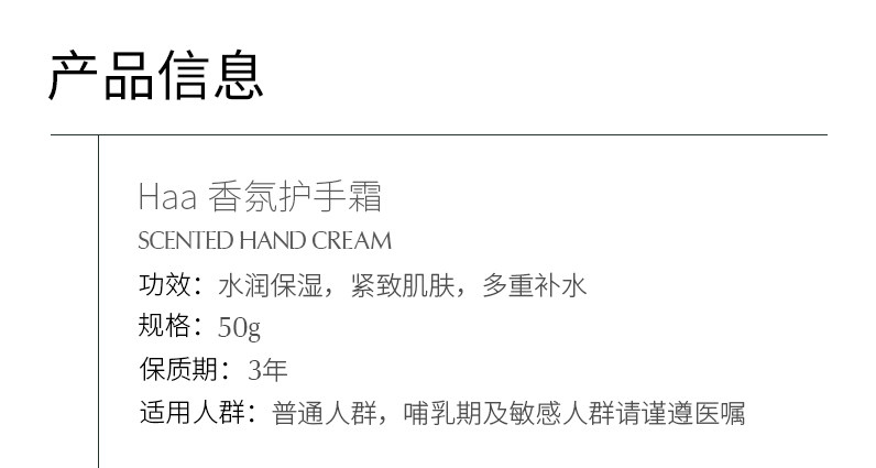 Haa Fragrance Hand Cream Is Hydrating, Moisturizing, Non-Greasy, Anti-Drying and Portable for Autumn and Winter 50g