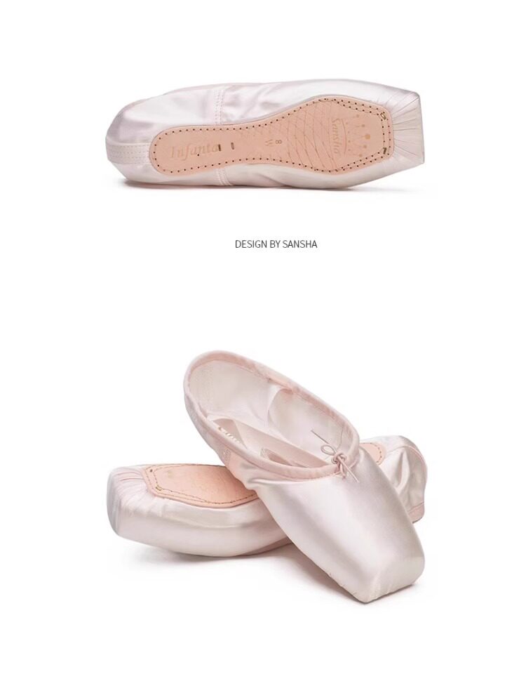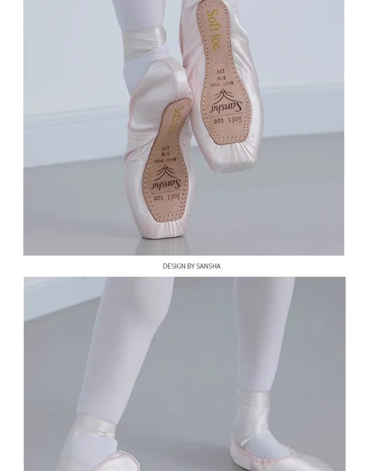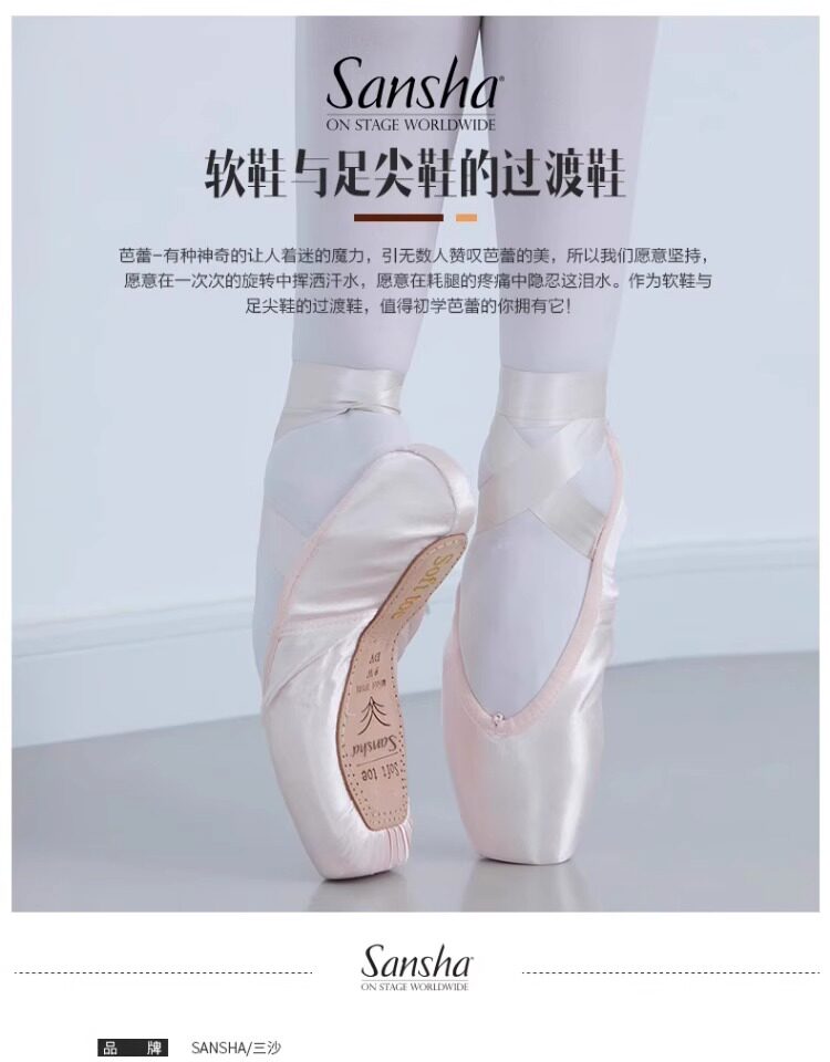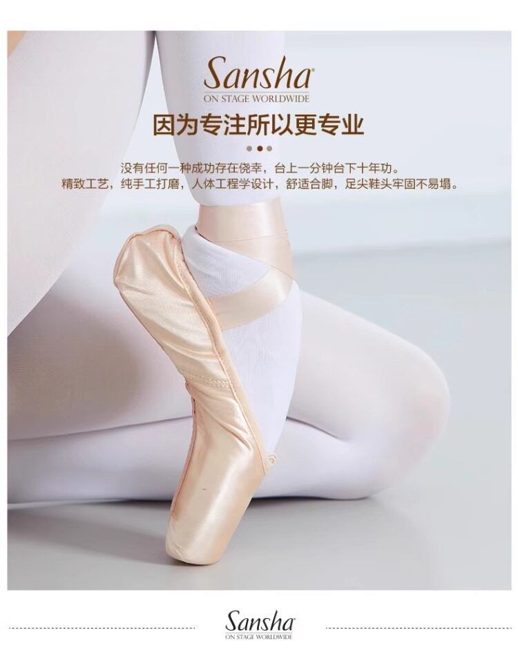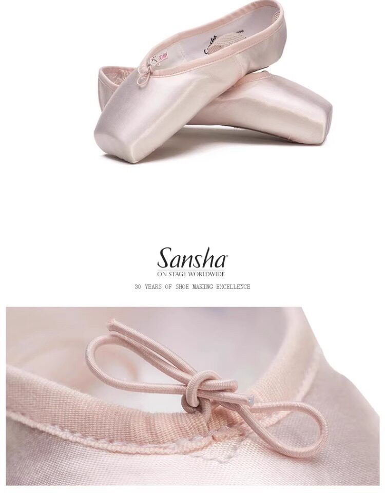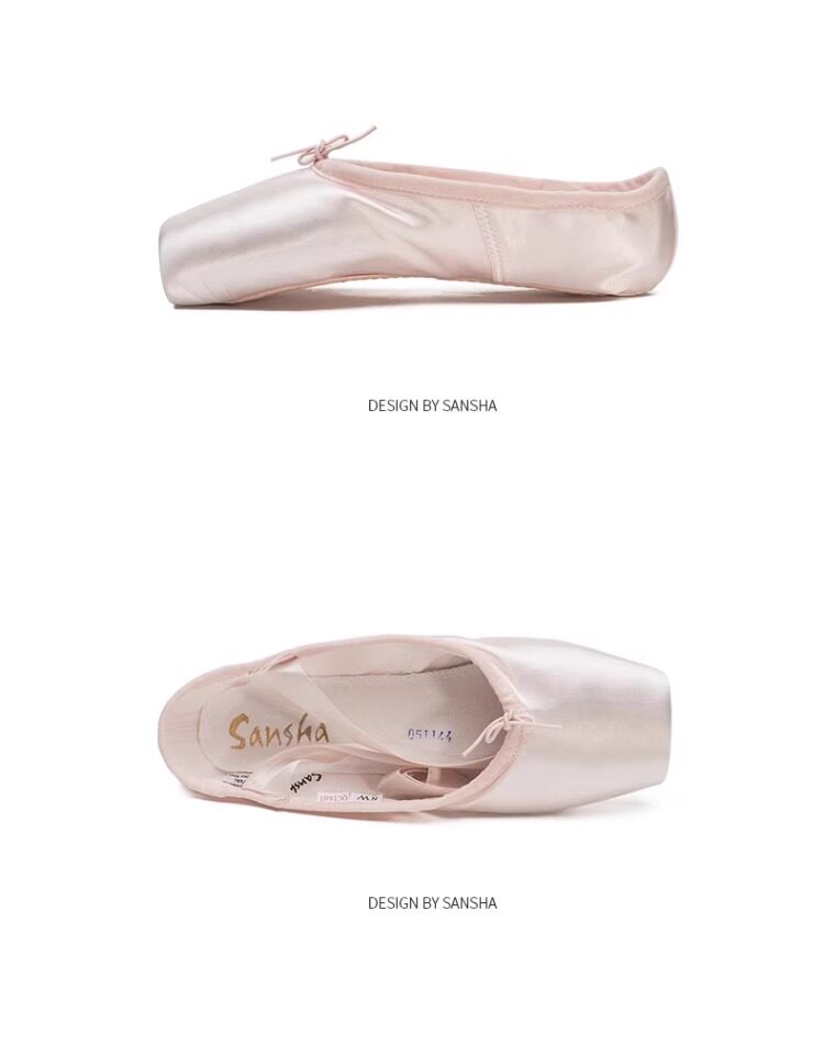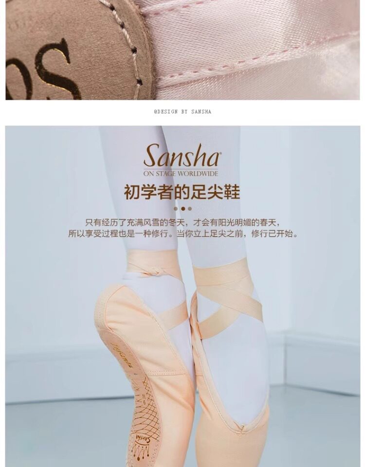 Sansha Beginner Ballet Practice Shoes with Straps, Entry-Level Satin Pointe Shoes, Hard Shoes