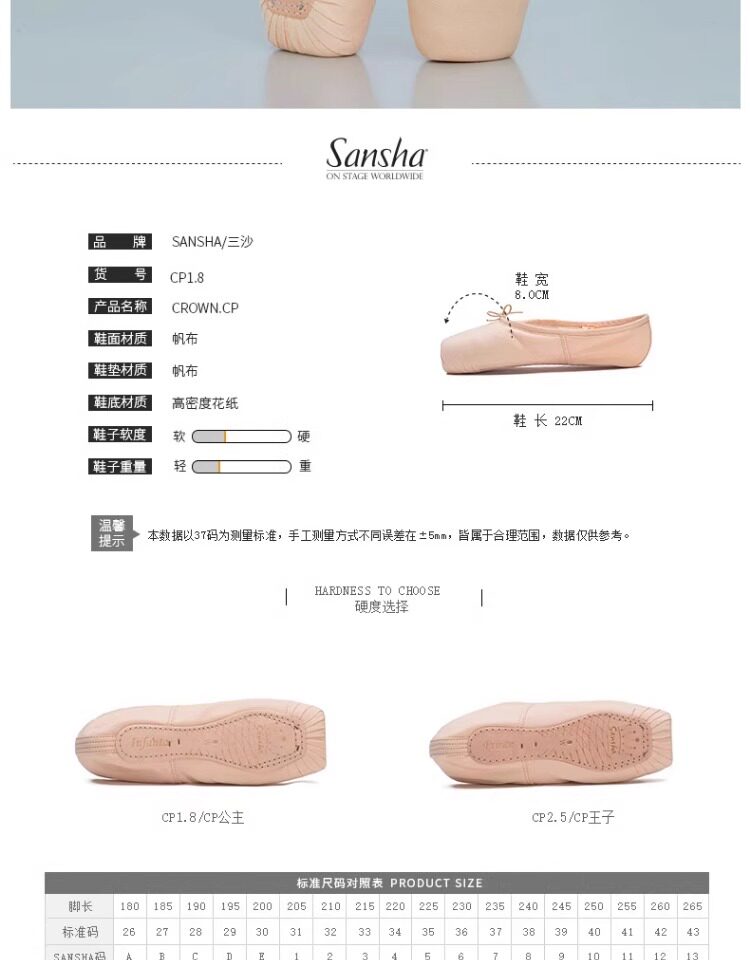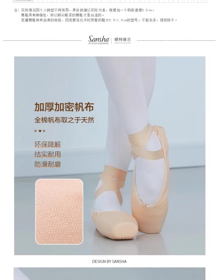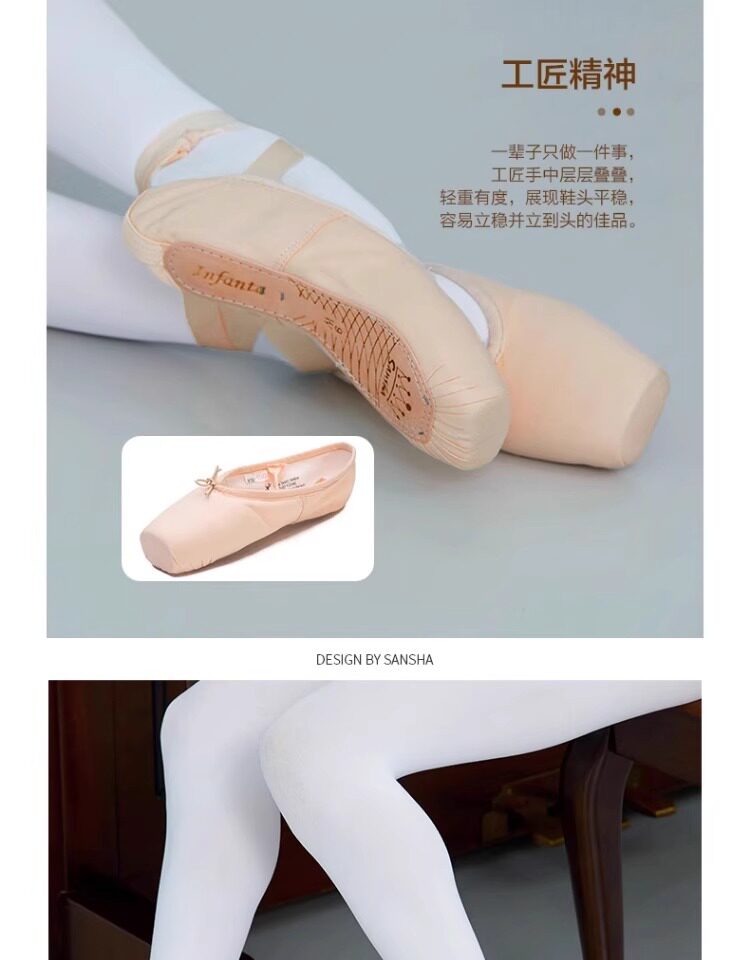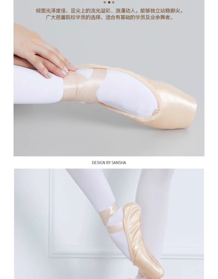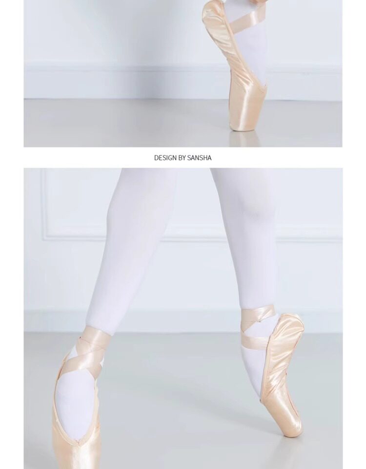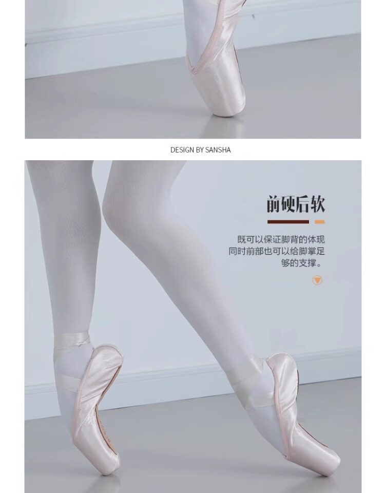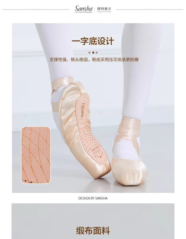 Sansha Beginner Ballet Practice Shoes with Straps, Entry-Level Satin Pointe Shoes, Hard Shoes