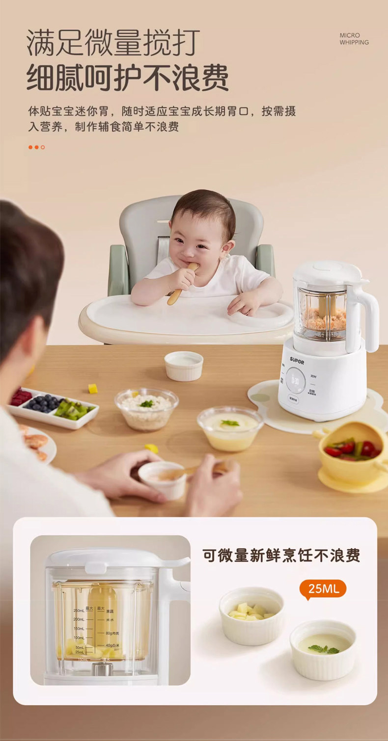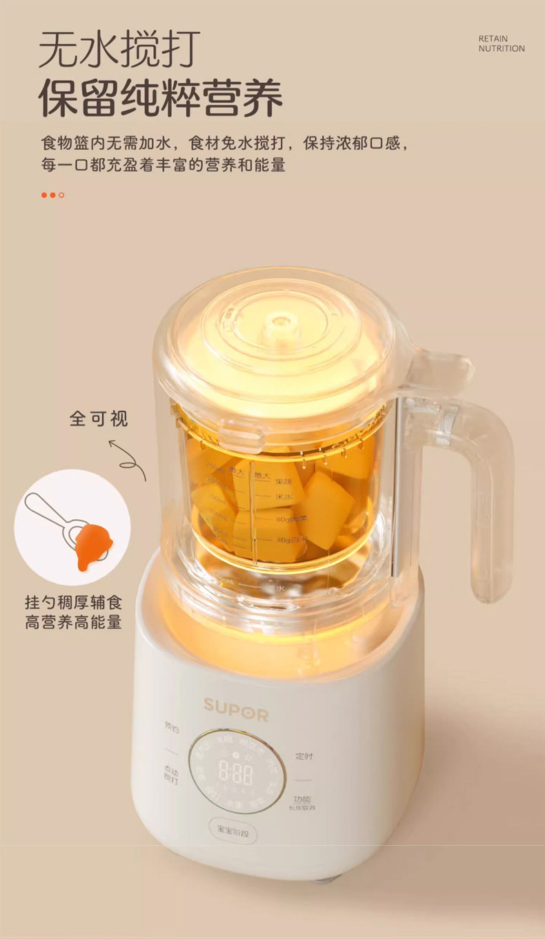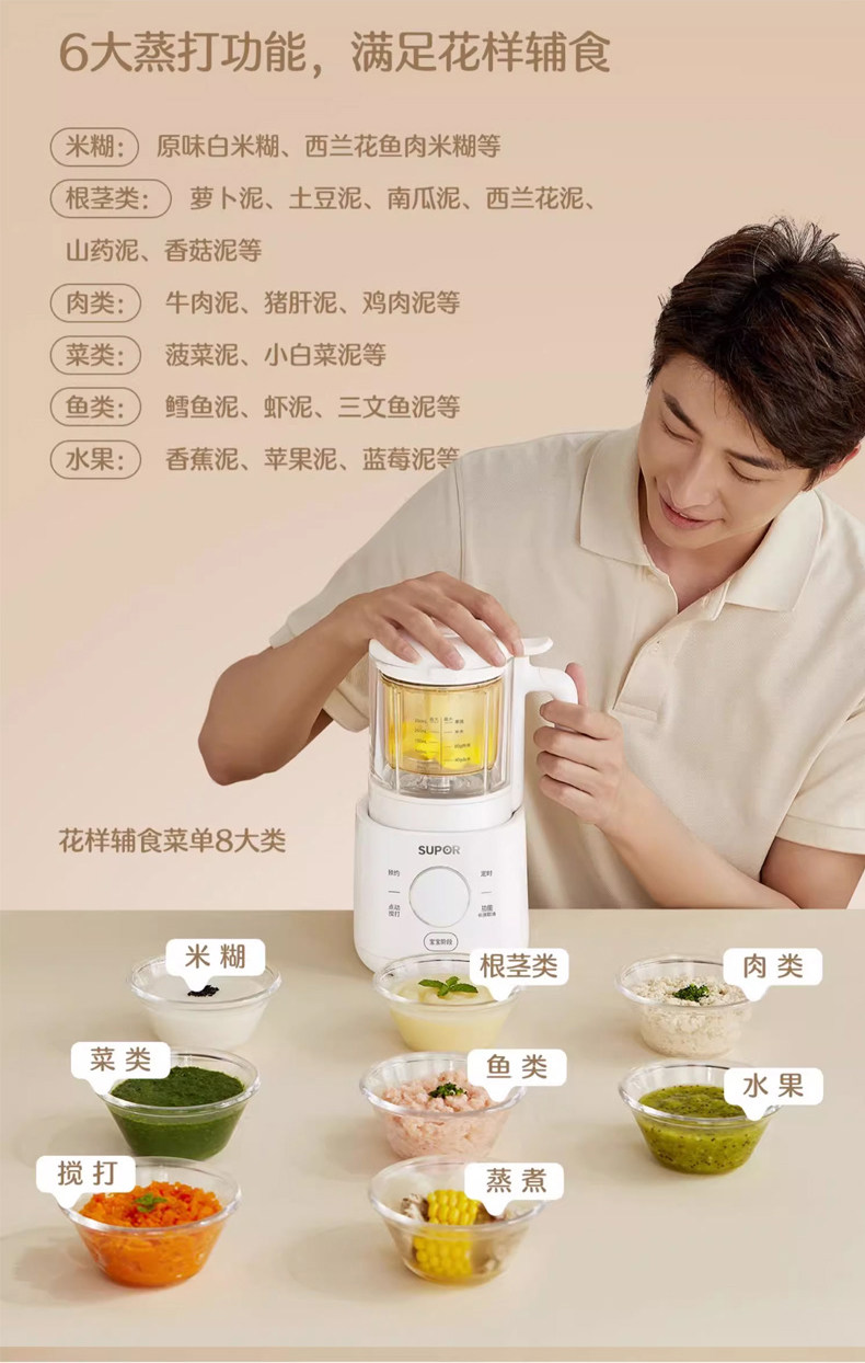 Supor Multi-Functional Baby Food Processor for Different Age Groups, Steam and Cook Rice Cereal, Specialized Tool for Making Puree