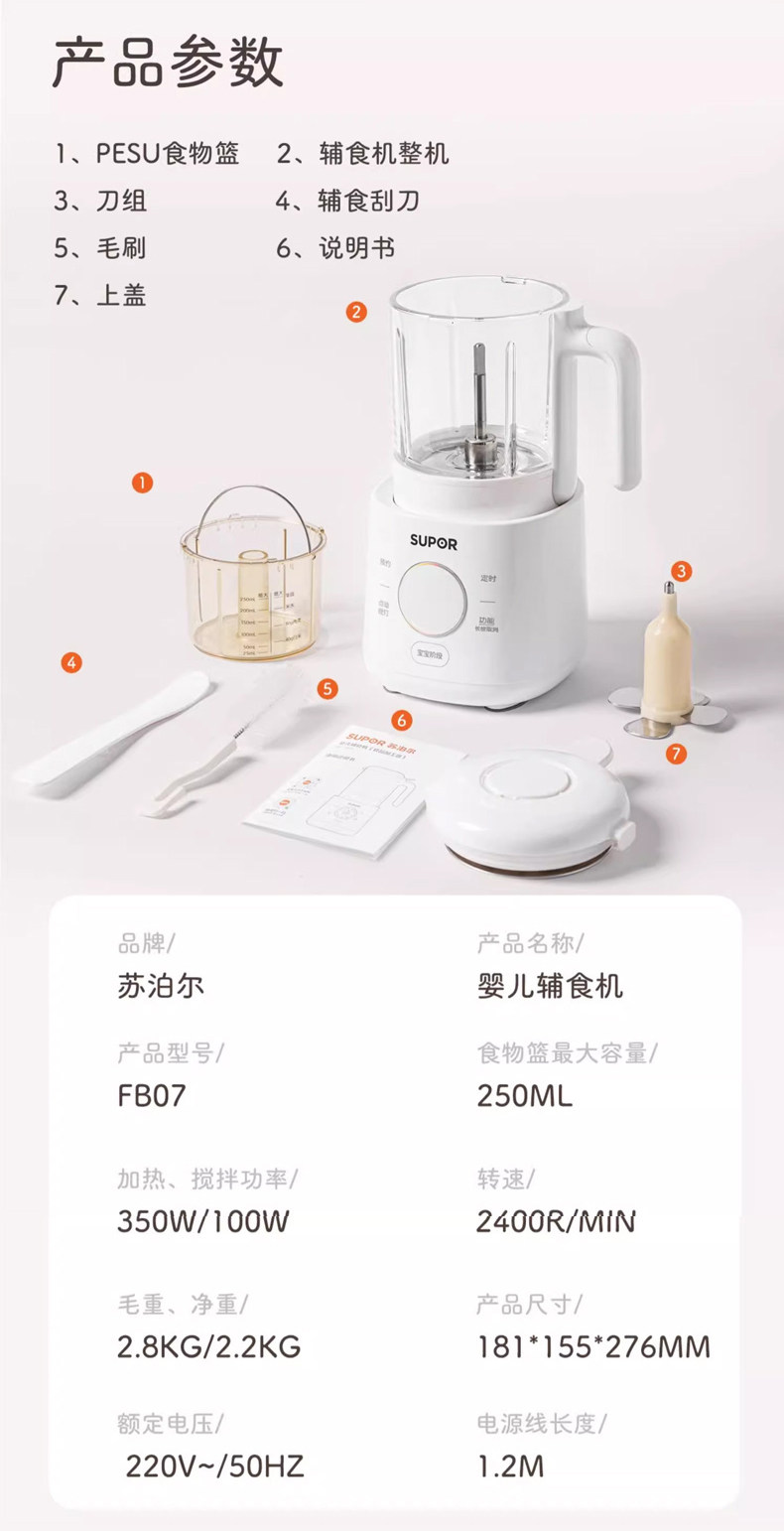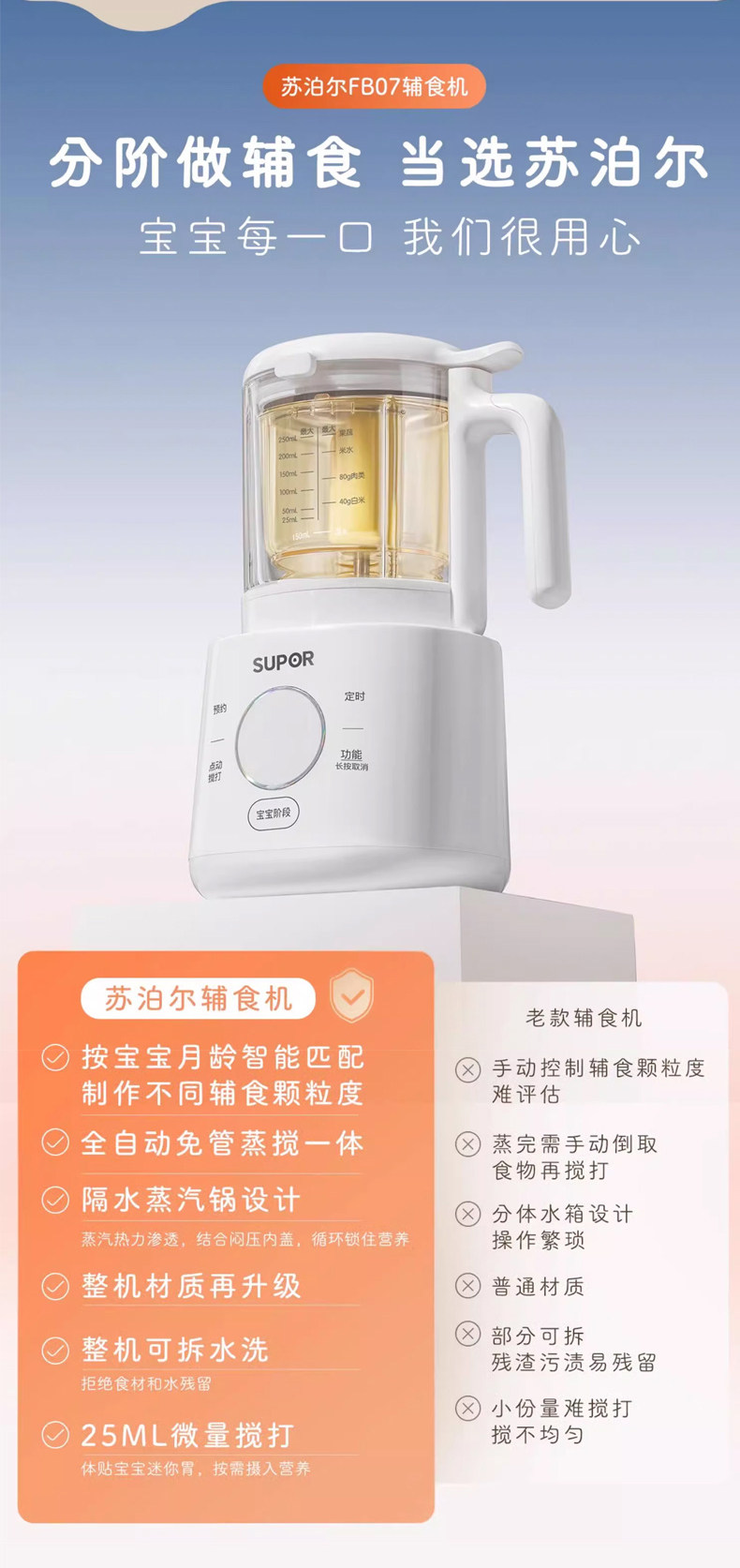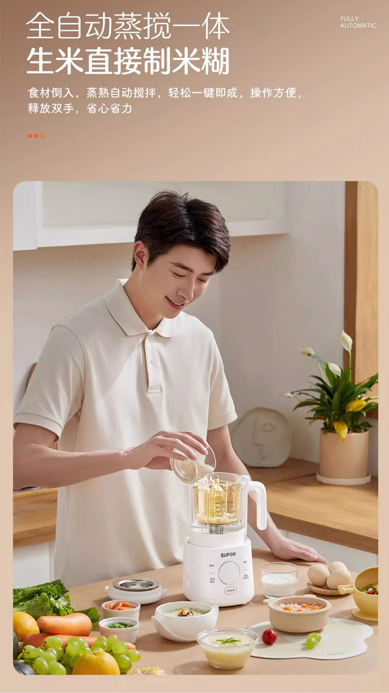 Supor Multi-Functional Baby Food Processor for Different Age Groups, Steam and Cook Rice Cereal, Specialized Tool for Making Puree