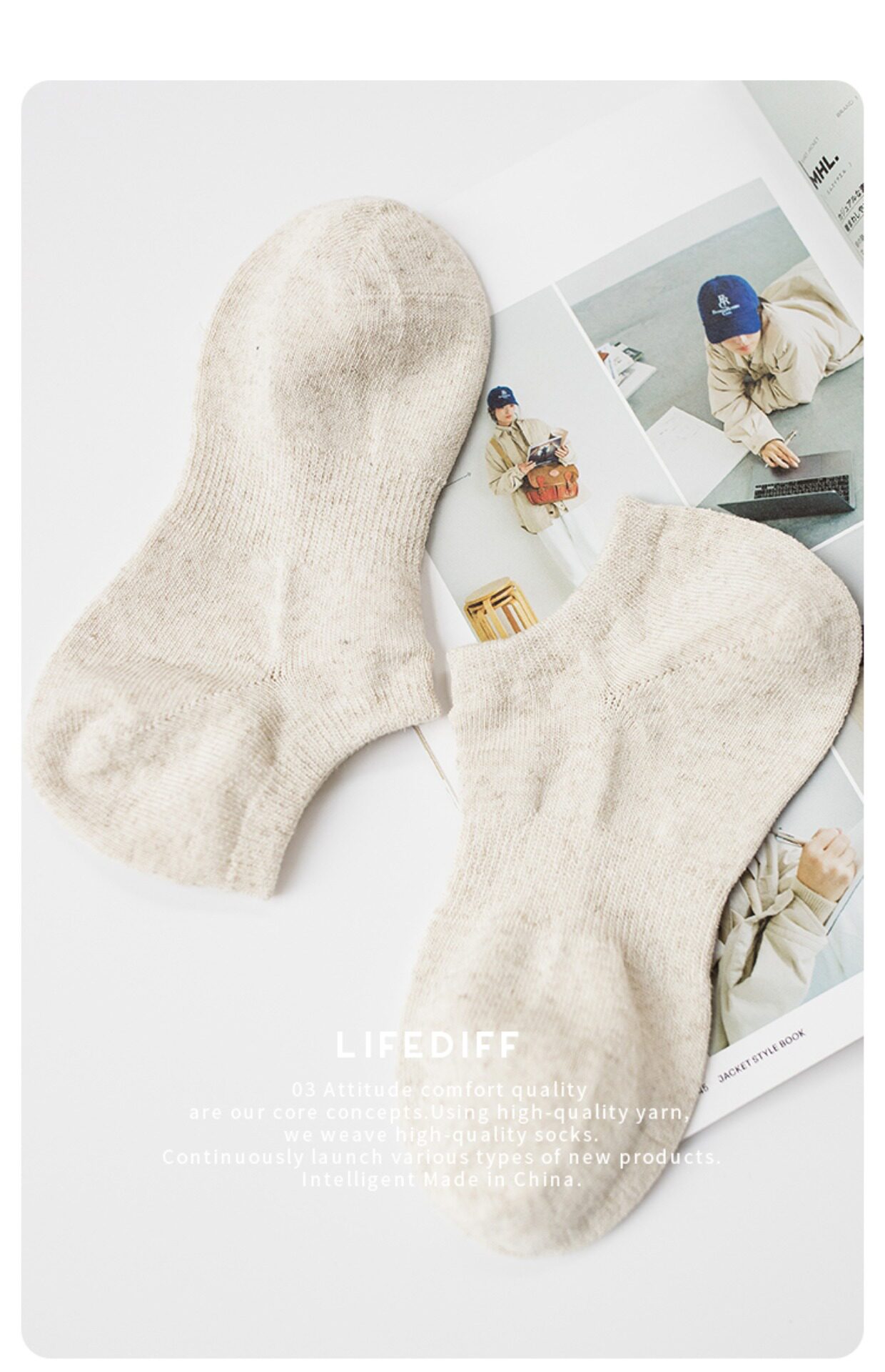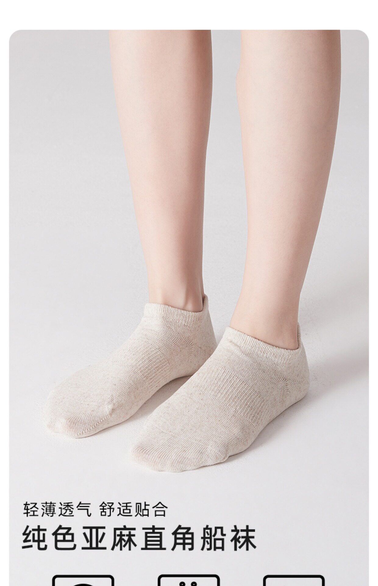 Women's Non-Slip Socks That Don'T Slip Off, Sweat-Absorbent Short Socks, Low-Cut Solid Color Liner Socks, Linen Low-Cut Right-Angle Heel Socks for Summer, Spring, and Autumn