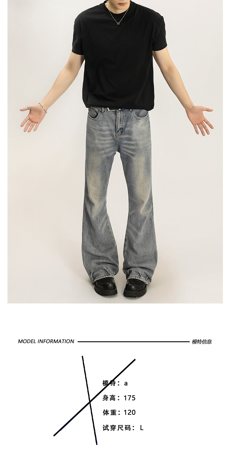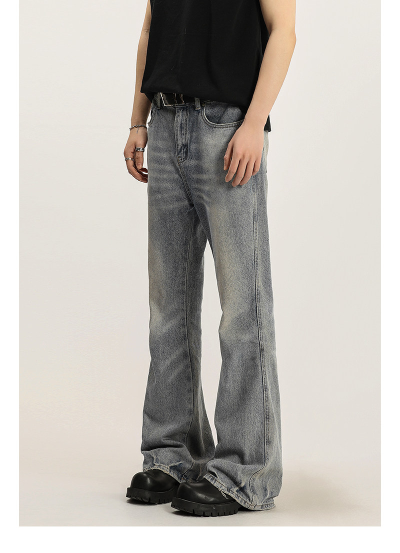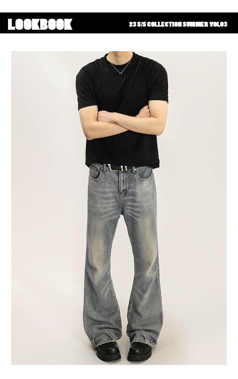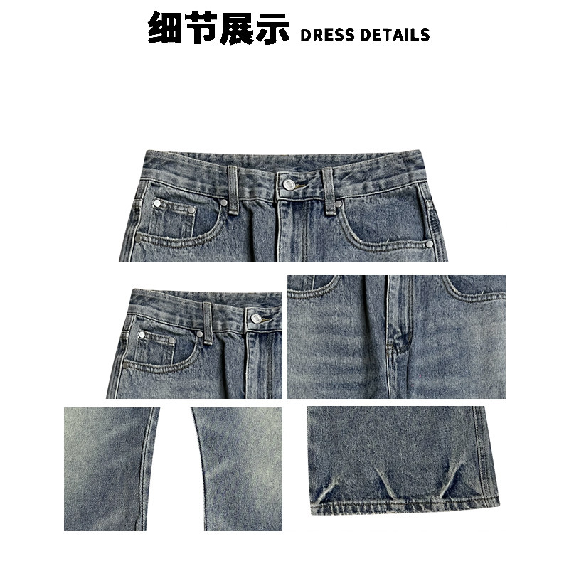 A Carton High Street Cleanfit Washed Denim Jeans for Men, Straight Loose Fit, Slightly Flared Long Pants, Vibe Style Pants for Women