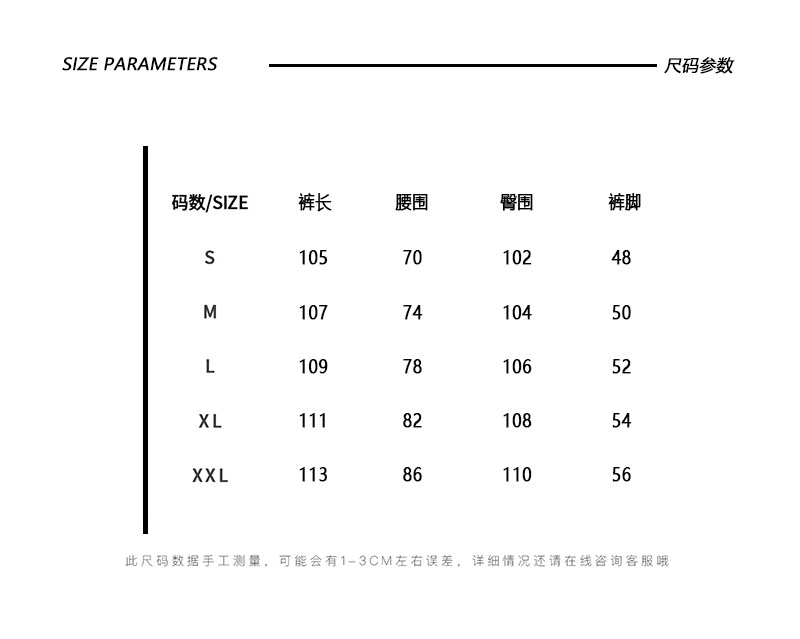 Outseam (cm) 99 cm 101.5 cm 104 cm 106.5 cm 109 cm