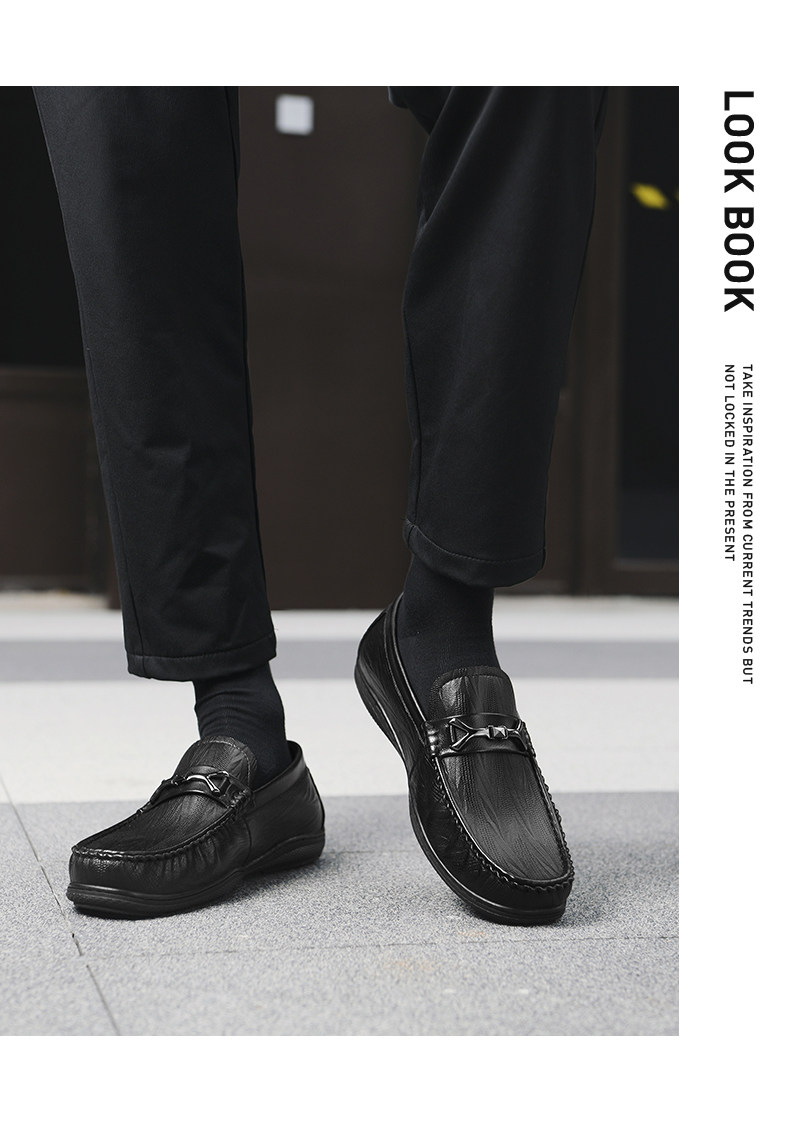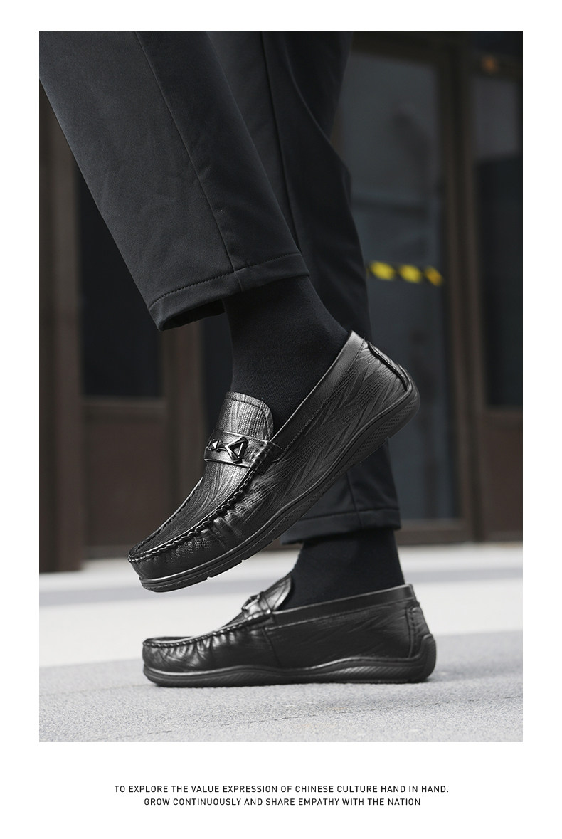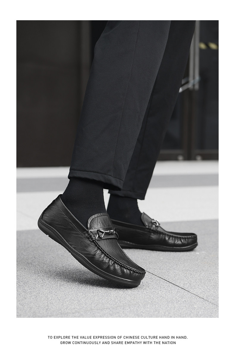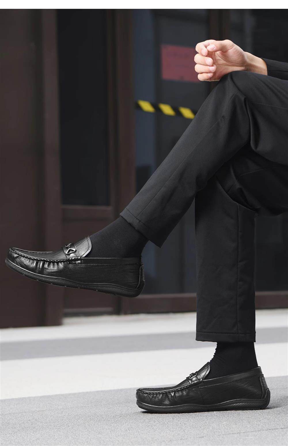Hailan Home Men's Genuine Leather Loafers Men's Business Soft Leather Soft Sole Slip-On Casual Leather Shoes