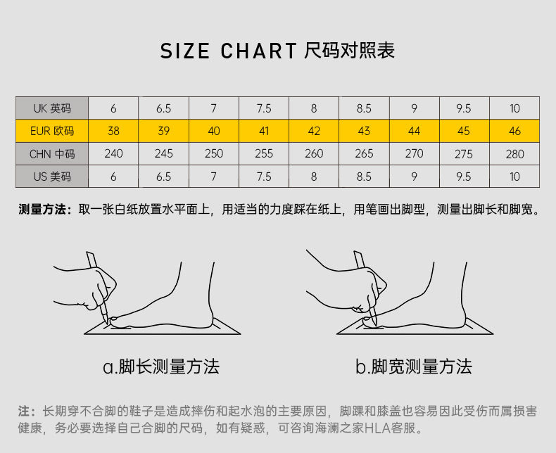 China (cm) 36 - 37 38 - 39 40 - 42 43 - 44 45 - 47