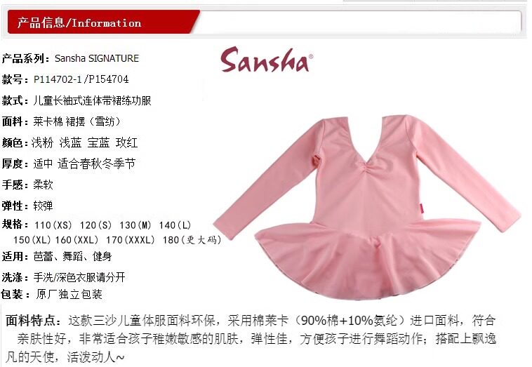Sansha Kidsren's Ballet Dance Clothing Lycra Cotton Training Women's Long-Sleeved Training Clothing Chiffon Gauze Skirt Gymnastics Clothing