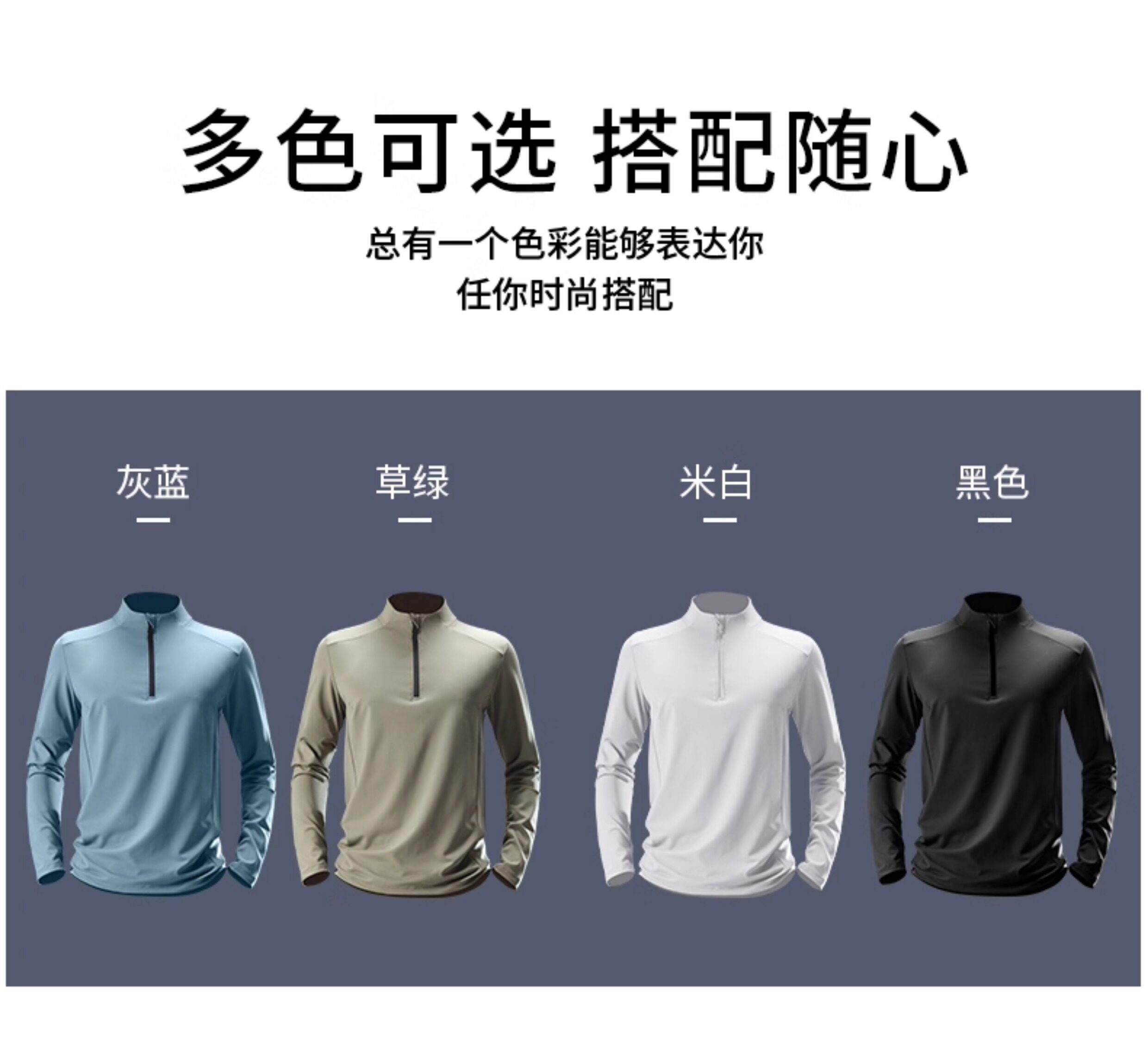 Sort by color Off-white quick dry half zip -,Grass Green Quick Dry Half Zipper -,Gray blue quick dry half zip -,Black quick dry half zip -