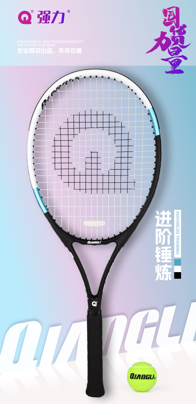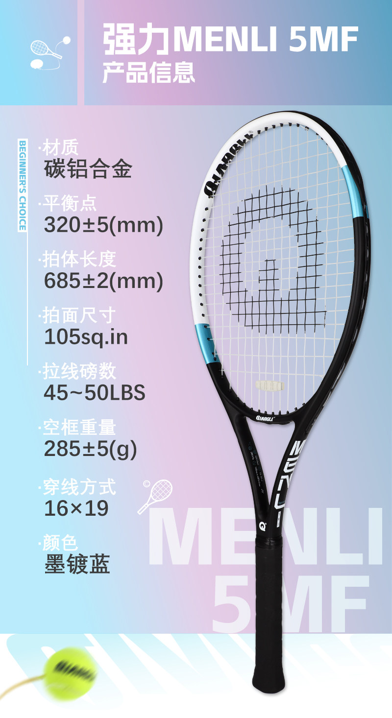 Powerful (Qiangli) Tennis Racket Menli 5Mf Advanced Tennis Racket Carbon-Aluminum Integrated Tennis Training Set