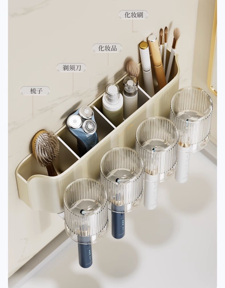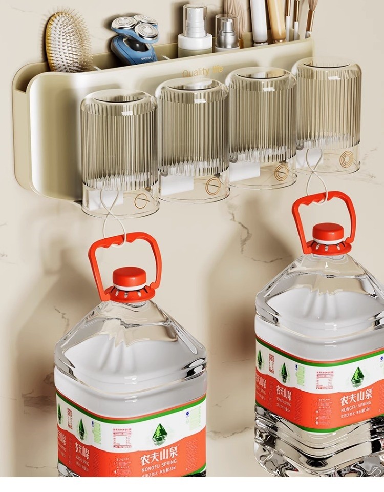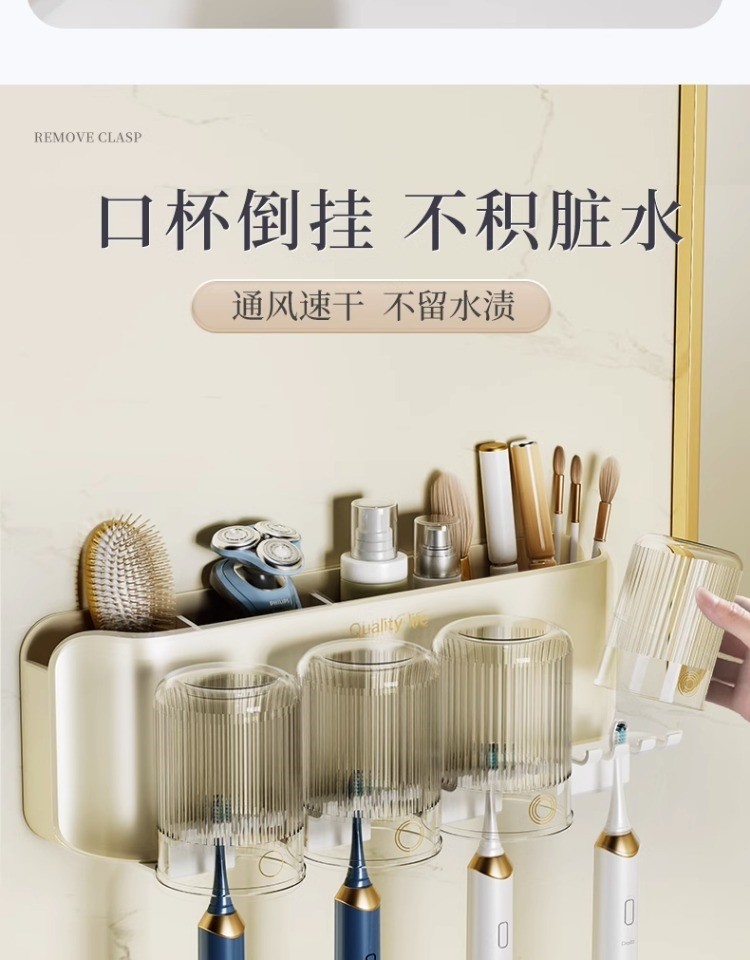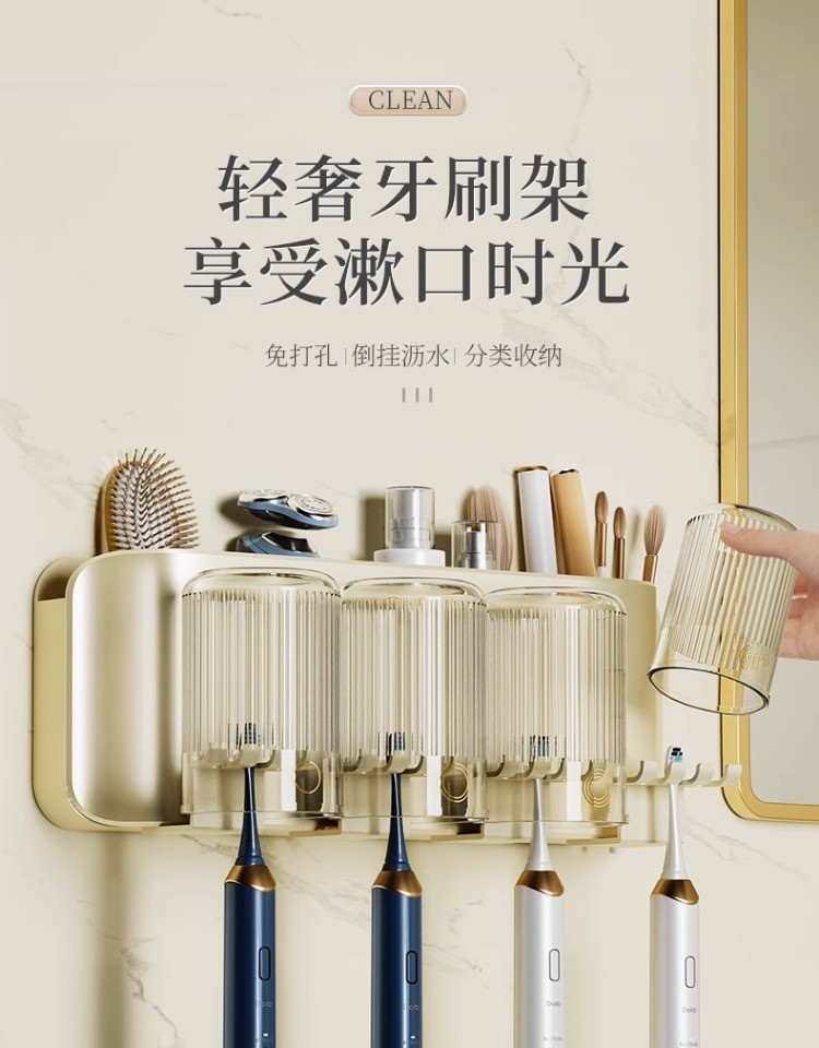 Japanese Imported Toothbrush Holder, No-Drill Wall-Mounted Toothbrush Cup and Mouthwash Cup Rack, Wall-Mounted Bathroom Set