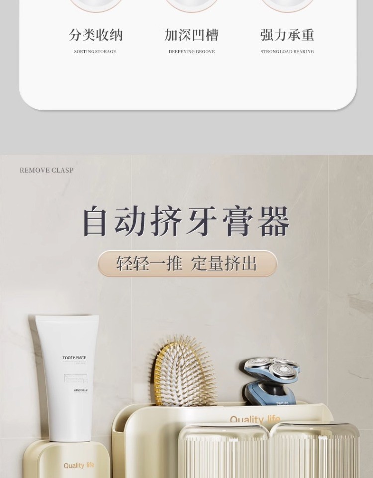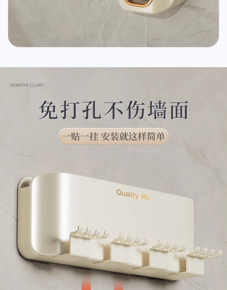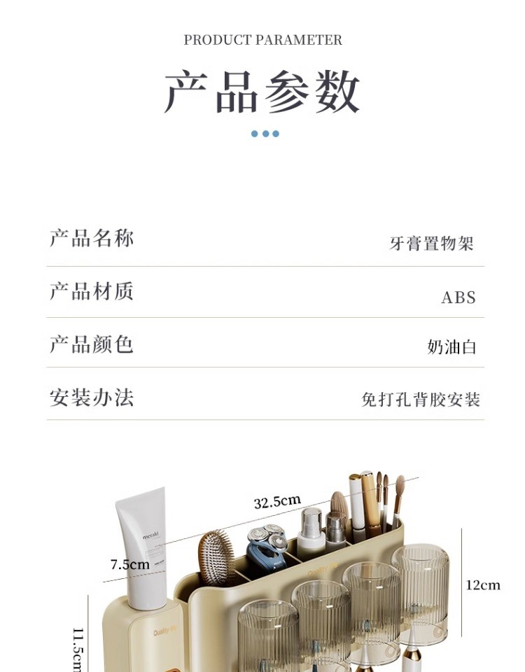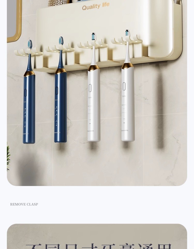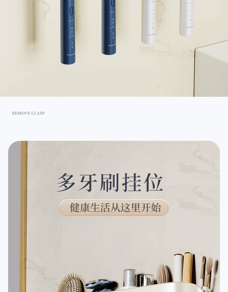Japanese Imported Toothbrush Holder, No-Drill Wall-Mounted Toothbrush Cup and Mouthwash Cup Rack, Wall-Mounted Bathroom Set