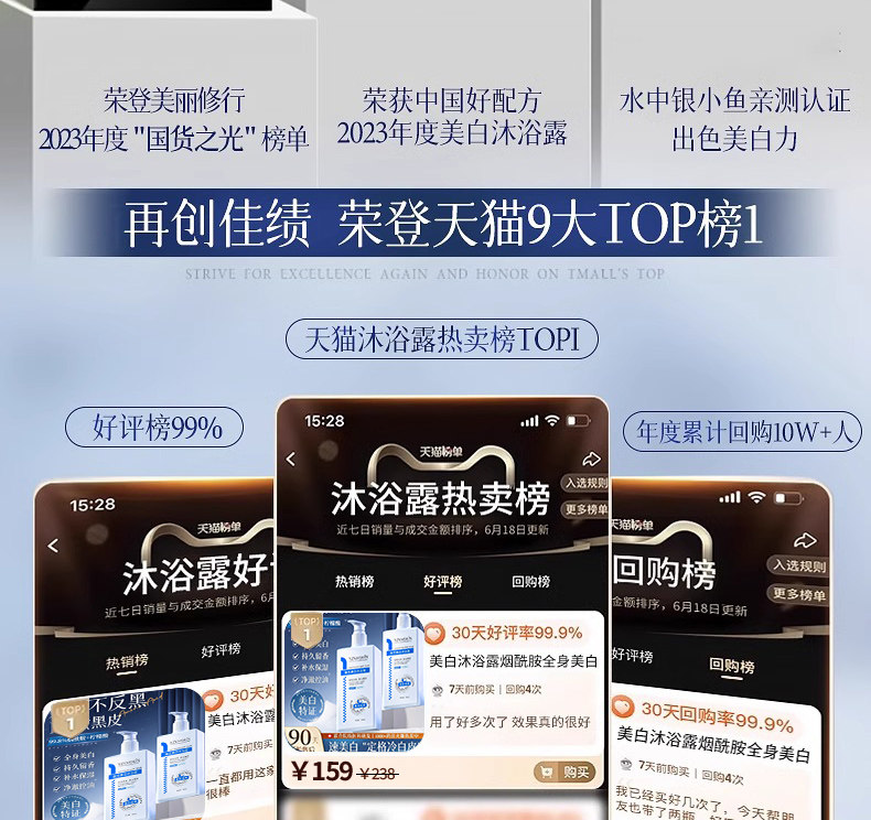 The No. 1 whitening shower gel list, niacinamide, tanning repair, cold white skin all over the body, whitening, a whitening artifact