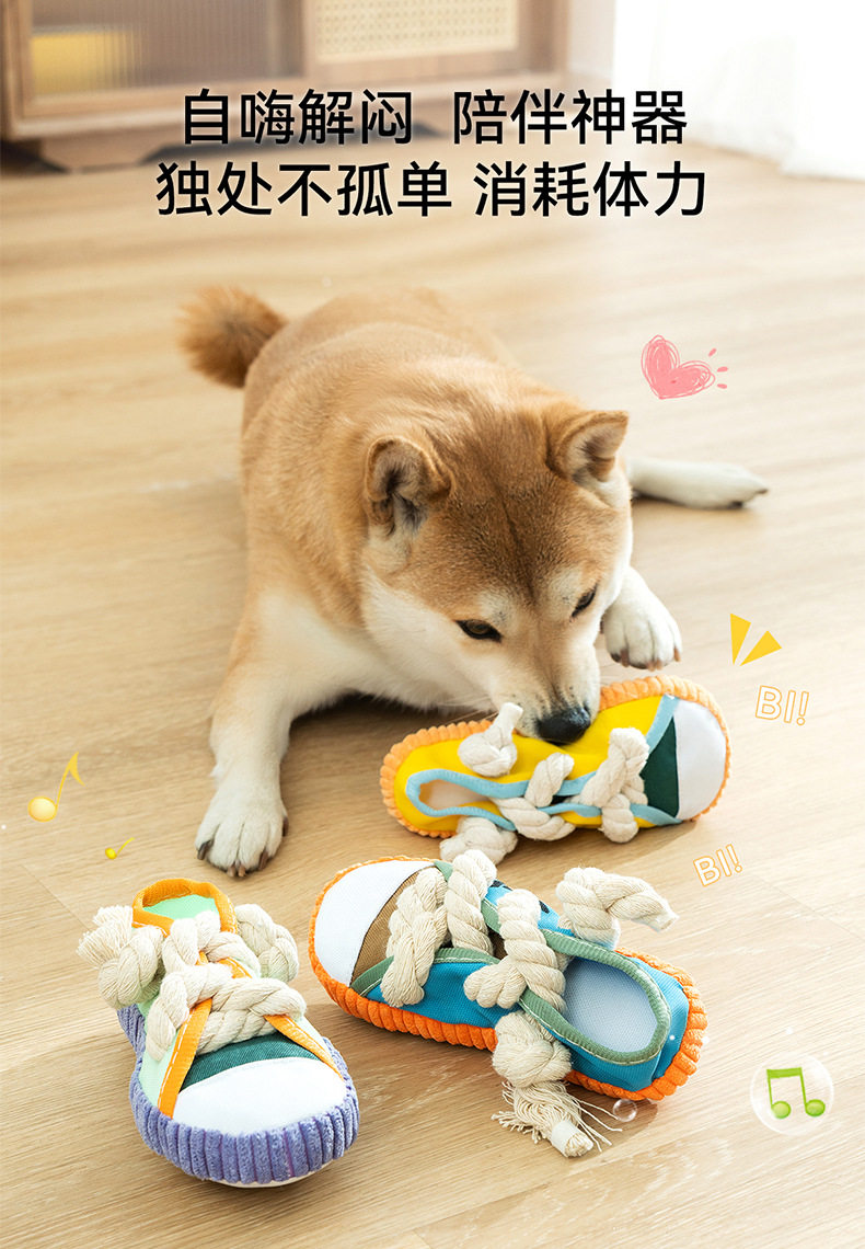 Dog Sound-Making Toy Shoes for Self-Entertainment, Boredom Relief, Chewing Shoes for Small and Medium-Sized Dogs, Teething and Chewing Canvas Shoes to Expend Energy