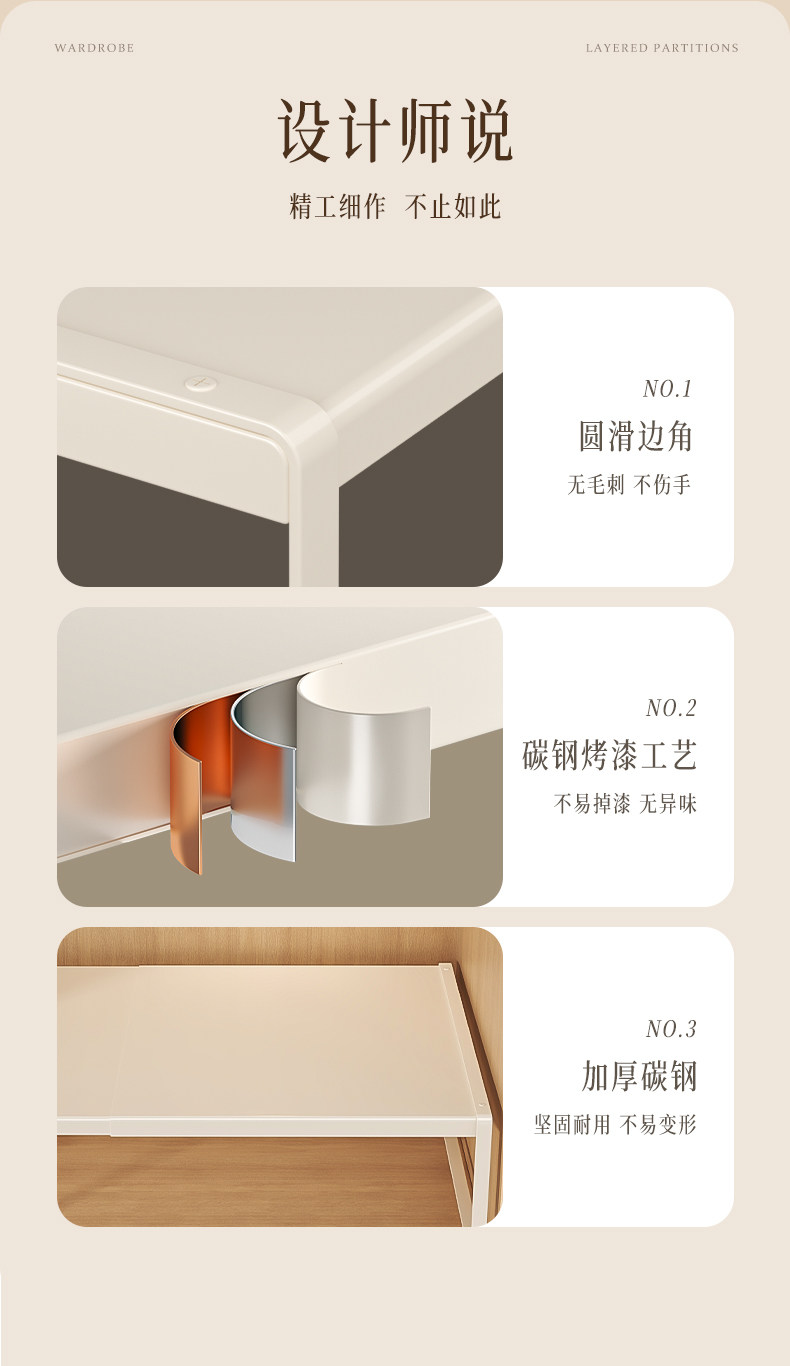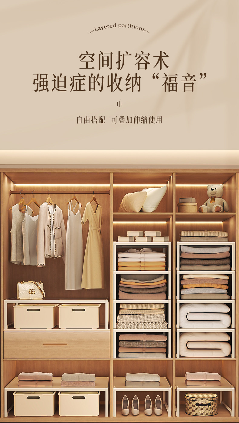 German Imported Wardrobe Partition Shelves Storage Cabinet Retractable Shelves in the Cabinet Wardrobe Carbon Steel Partition Shelves