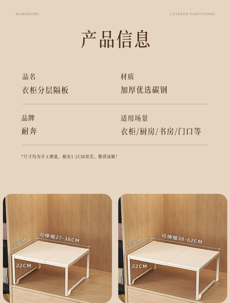 Color Classification [Carbon Steel Material]Length 27-38/Width 35 Height 22,[Carbon Steel Material]Length 38-62/Width 35 Height 22,[Widen and Heighten]?Length 38-62/Width 42 Height 33.5,[Carbon Steel Material]Length 50-80/Width 25 Height 22,[Carbon Steel Material]Length 50-80/Width 35 Height 22,[Heightened and Widened]?Length 50-80/Width 42 Height 33.5,[Two Packs]Length 27-38/Width 35 Height 22,[Two Packs]Length 38-62/Width 35 Height 22,[Two Packs]Length 38-62/Width 42 Height 33.5,[Two Packs]Length 50-80/Width 25 Height 22,[Two Packs]Length 50-80/Width 35 Height 22,[Two Packs]?Length 50-80/Width 42 Height 33.5,[Wardrobe Partition + 2 Storage Boxes]Length 38-62/Width 35 Height 22,[Wardrobe Partition + 2 Storage Boxes]Length 38-62/Width 42 Height 33.5,[Wardrobe Partition + 2 Storage Boxes]Length 50-80/Width 35 Height 22,[Wardrobe Partition + 2 Storage Boxes]Length 50-80/Width 42 Height 33.5,[Three Pack]Length 27-38/Width 35 Height 22,[Three Pack]Length 38-62/Width 35 Height 22,[Three Pack]Length 38-62/Width 42 Height 33.5,[Three Pack]Length 50-80/Width 25 Height 22,[Three Pack]Length 50-80/Width 35 Height 22,[Three Pack]?Length 50-80/Width 42 Height 33.5