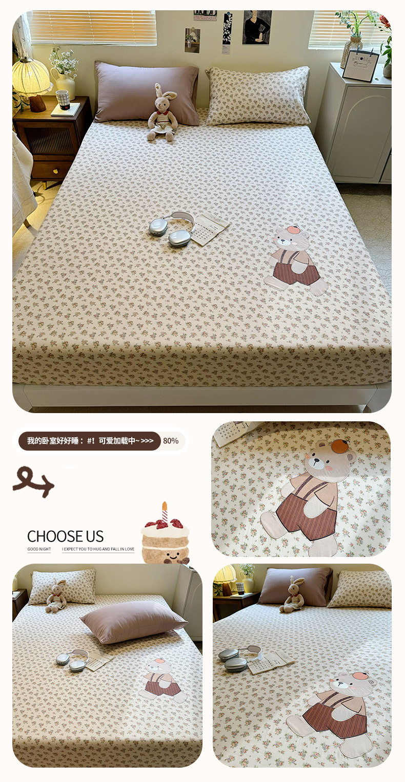 Cotton double-layer gauze fitted sheet single piece 100 pure cotton cartoon children's all-inclusive bed cover mattress protector sheet set