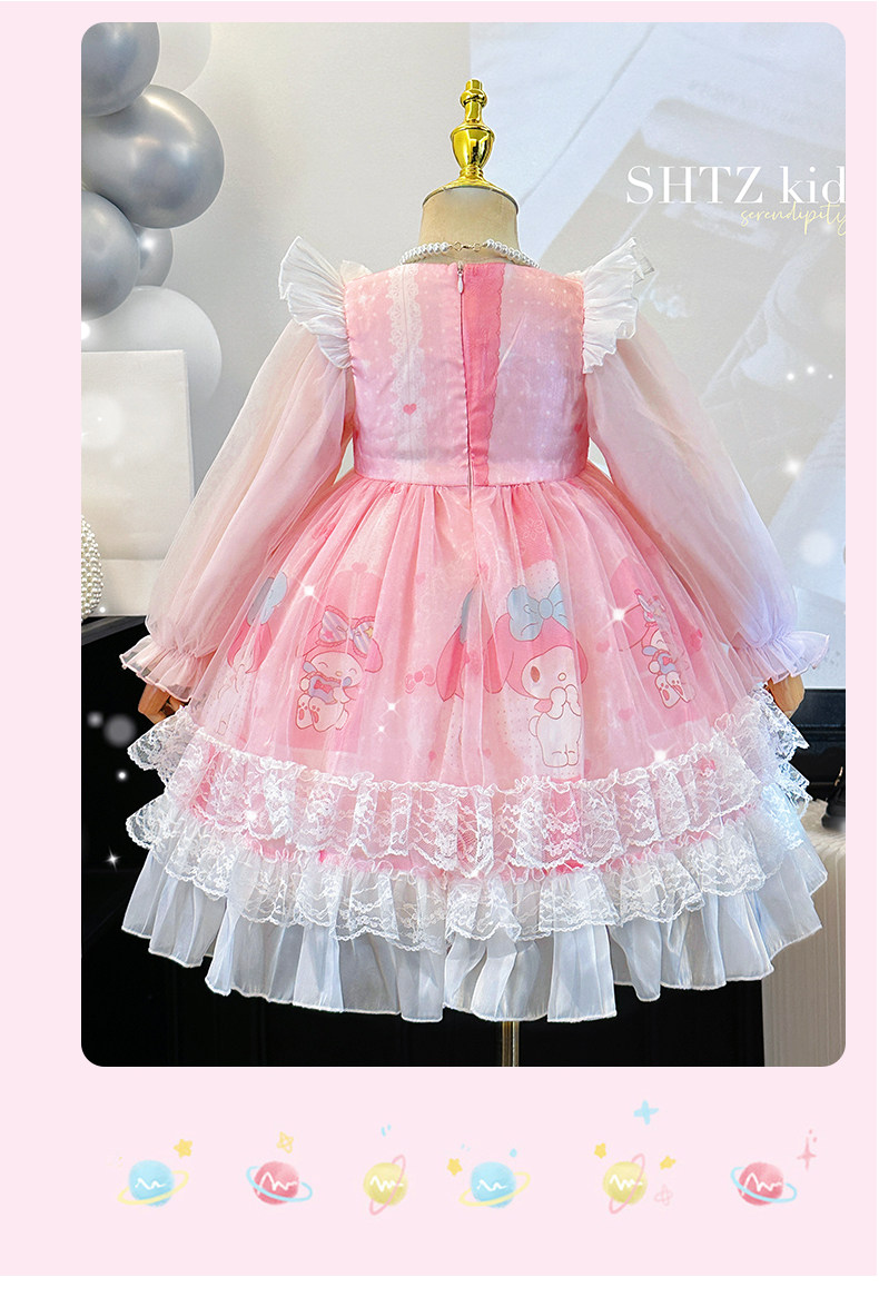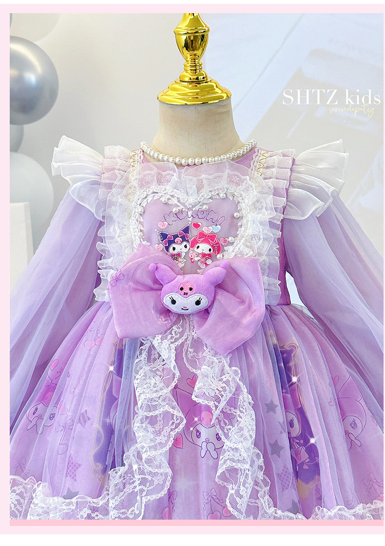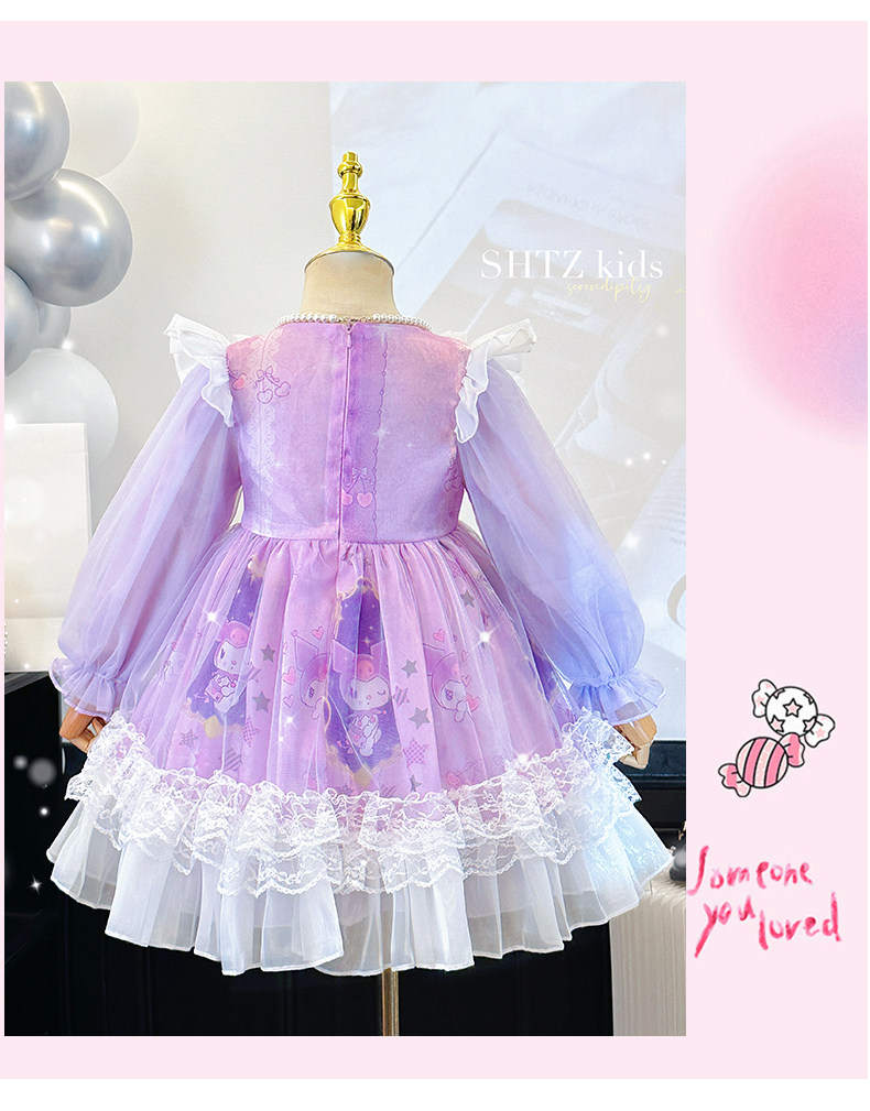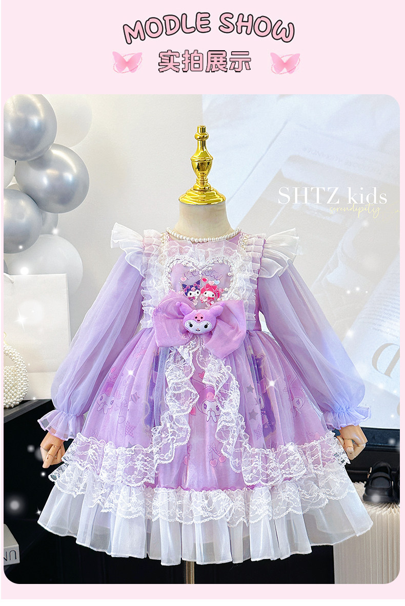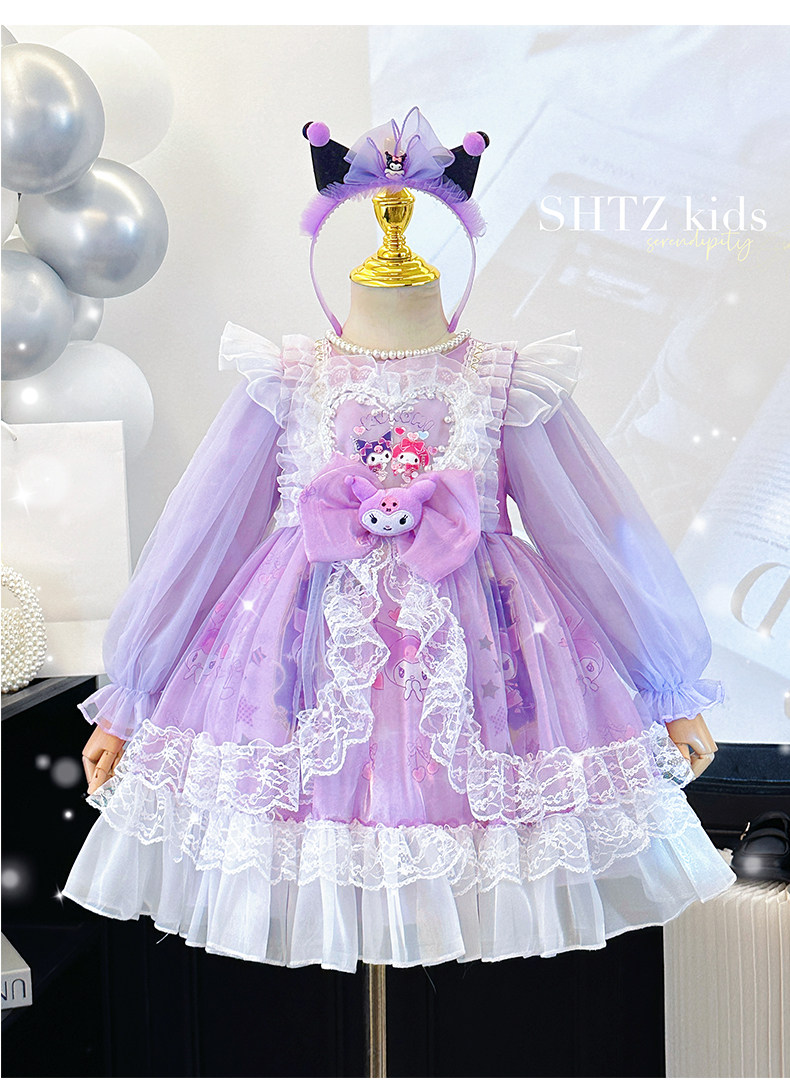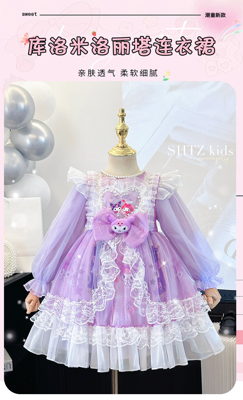 Kuromi Lolita Princess Dress for Girls, Spring and Autumn 2025 New Style, Children's Fashionable Melody Dress