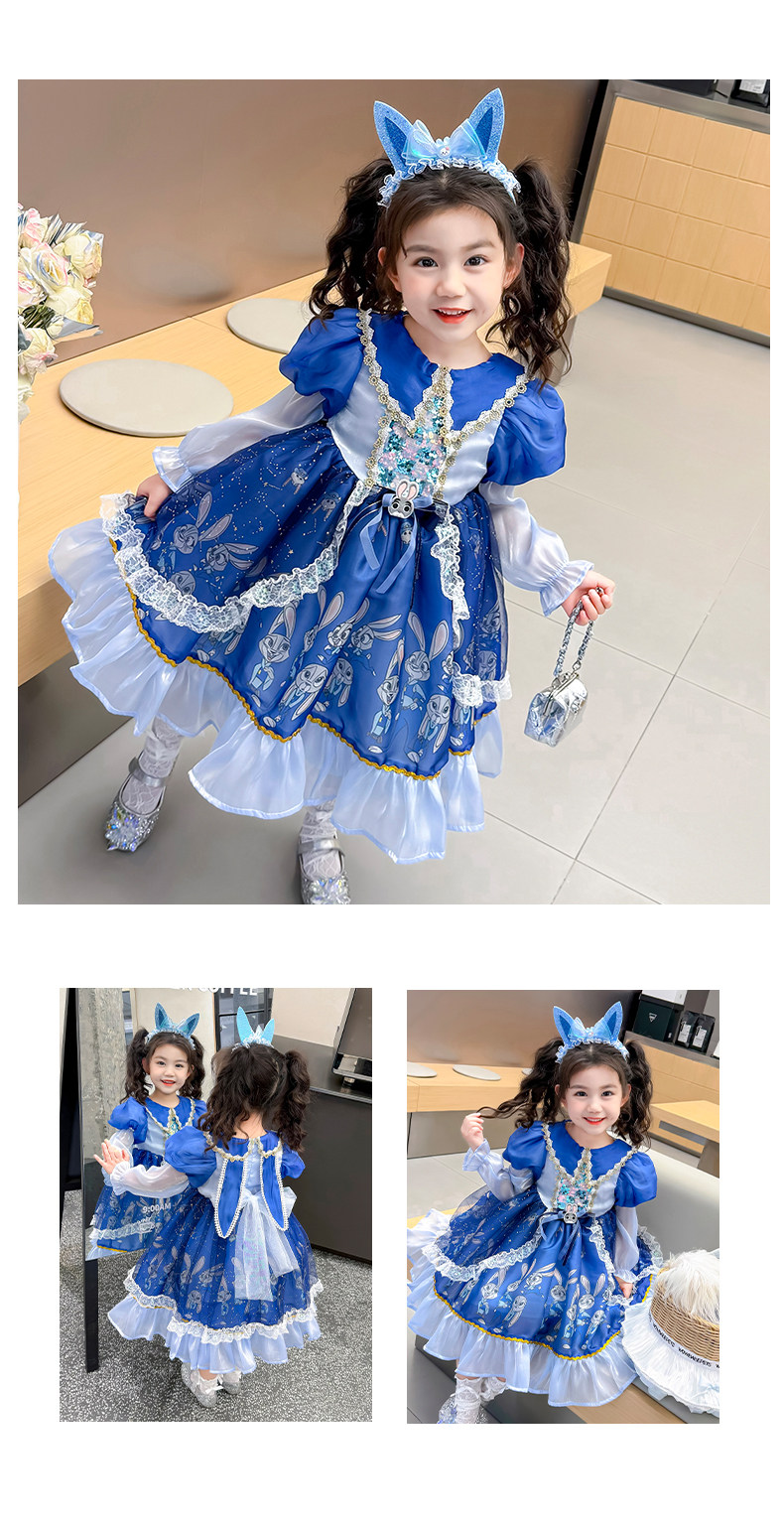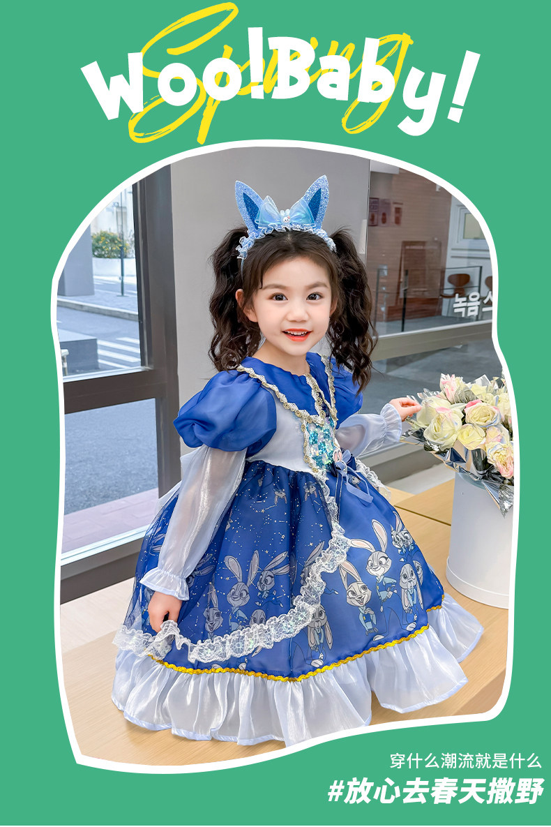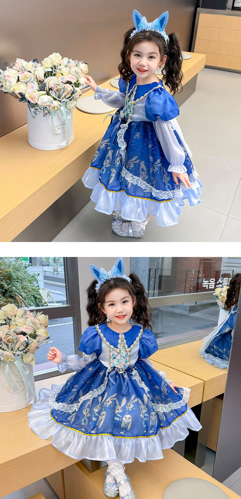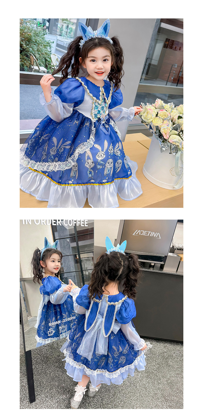 Rabbit Police Officer Lolita Princess Dress for Girls Spring and Autumn 2025 Baby Girl Dress Children's Stylish Judy Dress