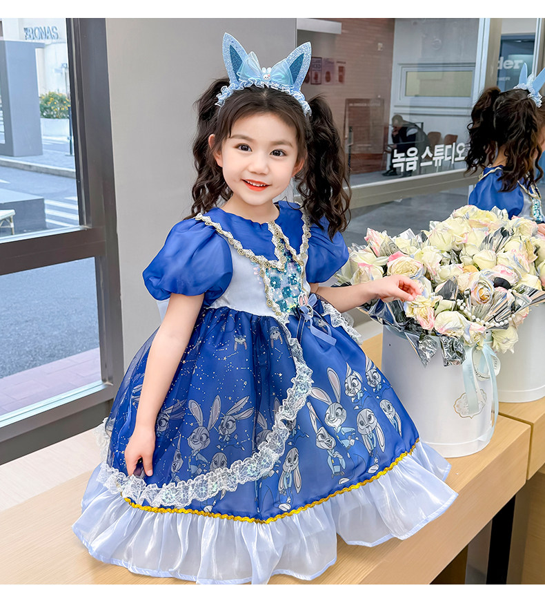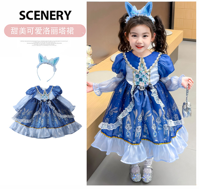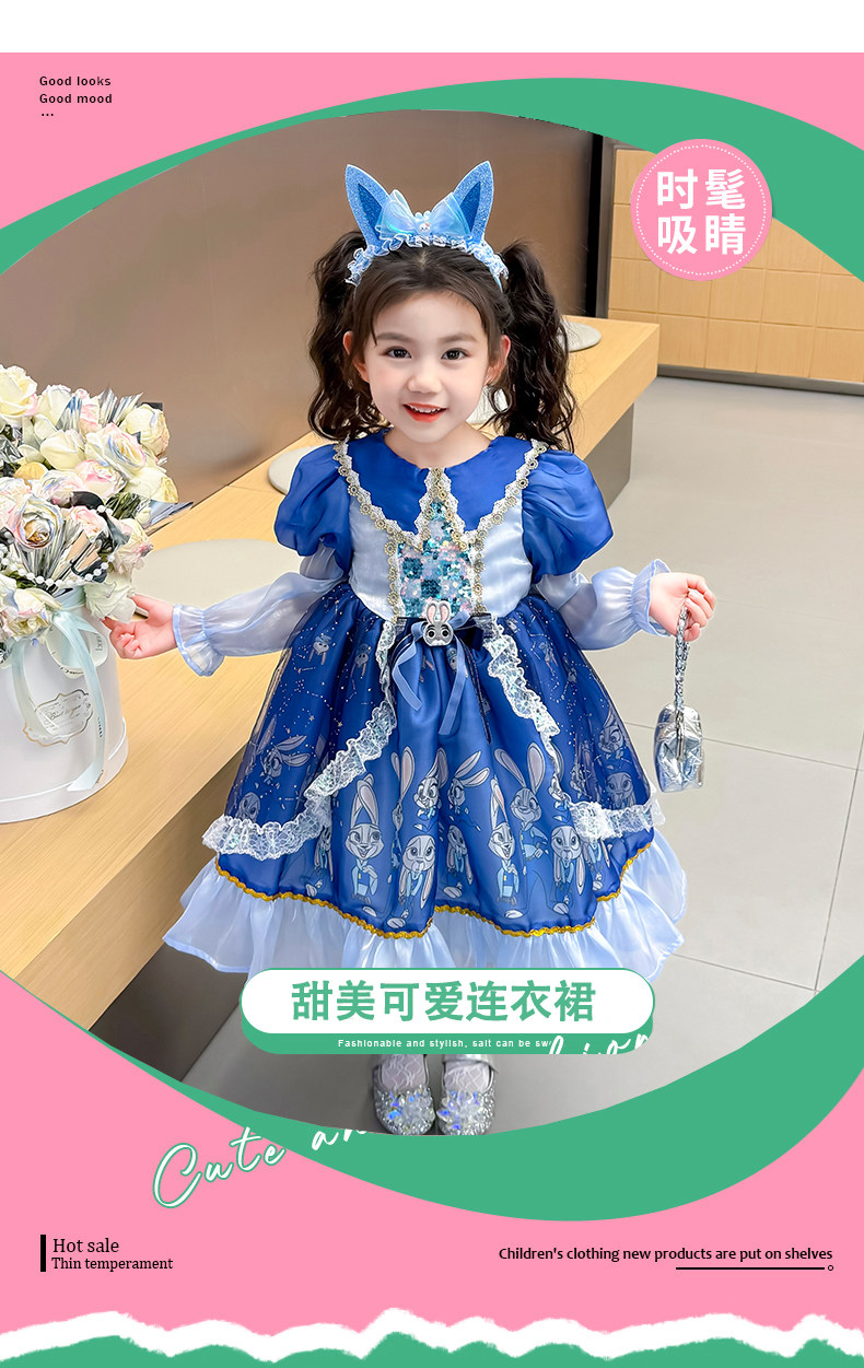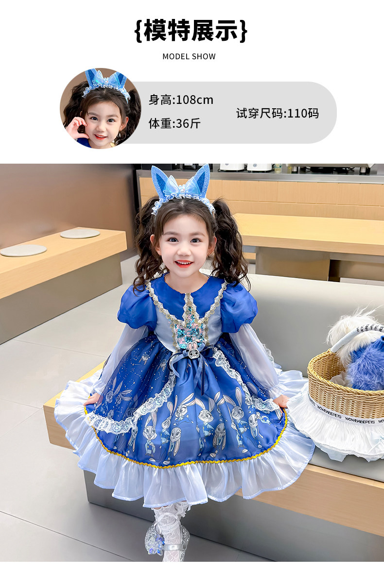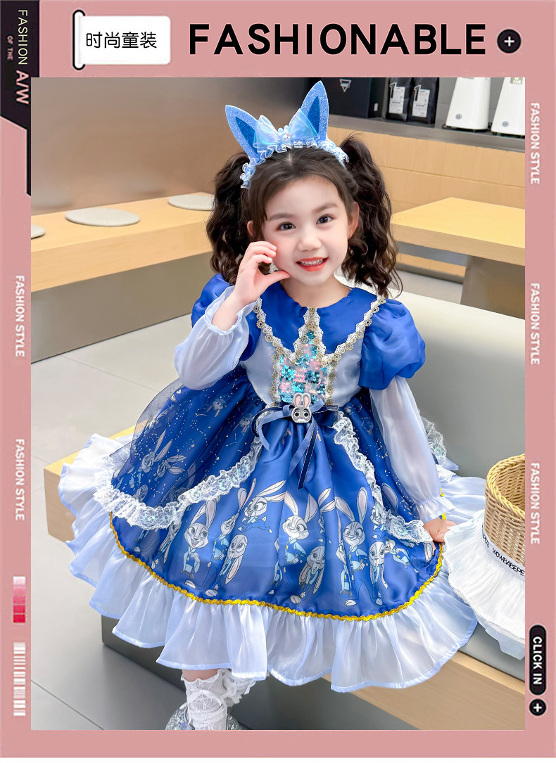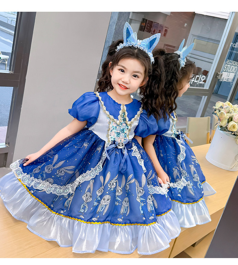 Rabbit Police Officer Lolita Princess Dress for Girls Spring and Autumn 2025 Baby Girl Dress Children's Stylish Judy Dress