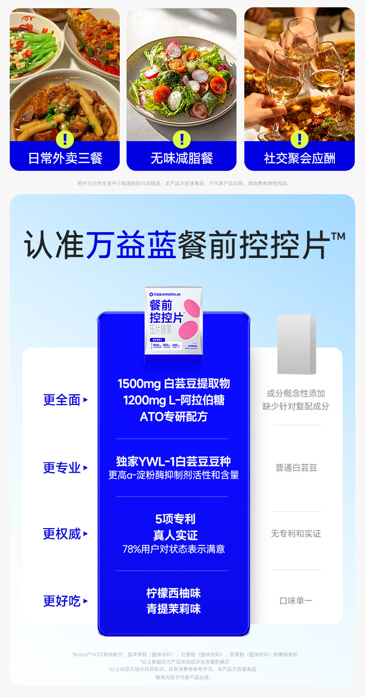 Wonderlab Blue and White Kidney Bean Chewable Tablets Sugar and Carbohydrate Control Dietary Fiber Pre-Meal Tablets