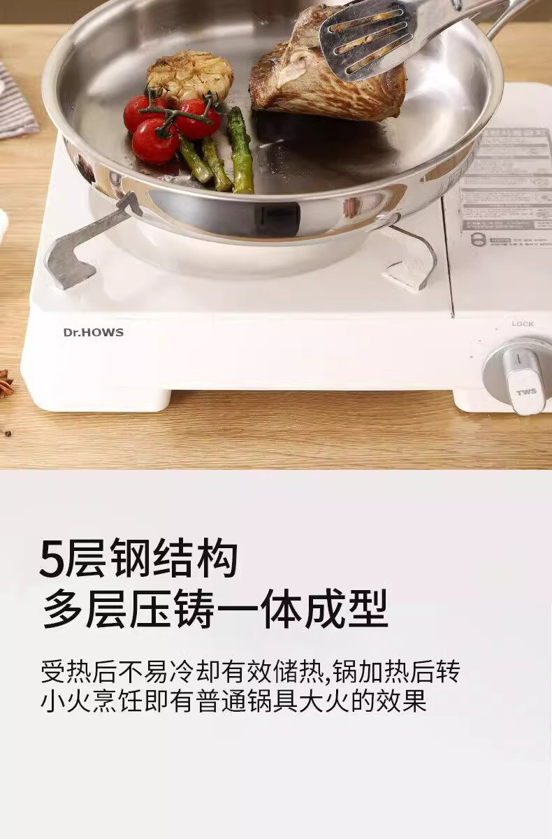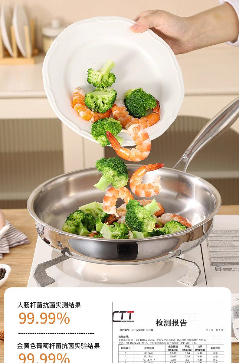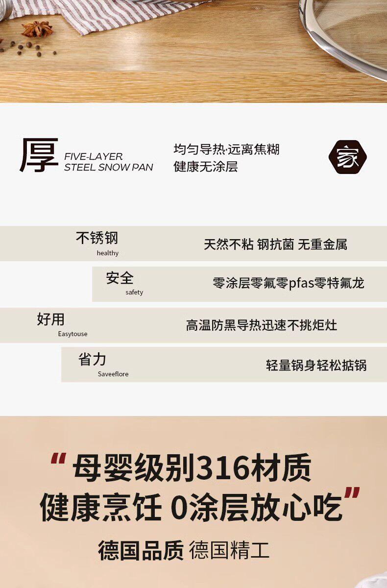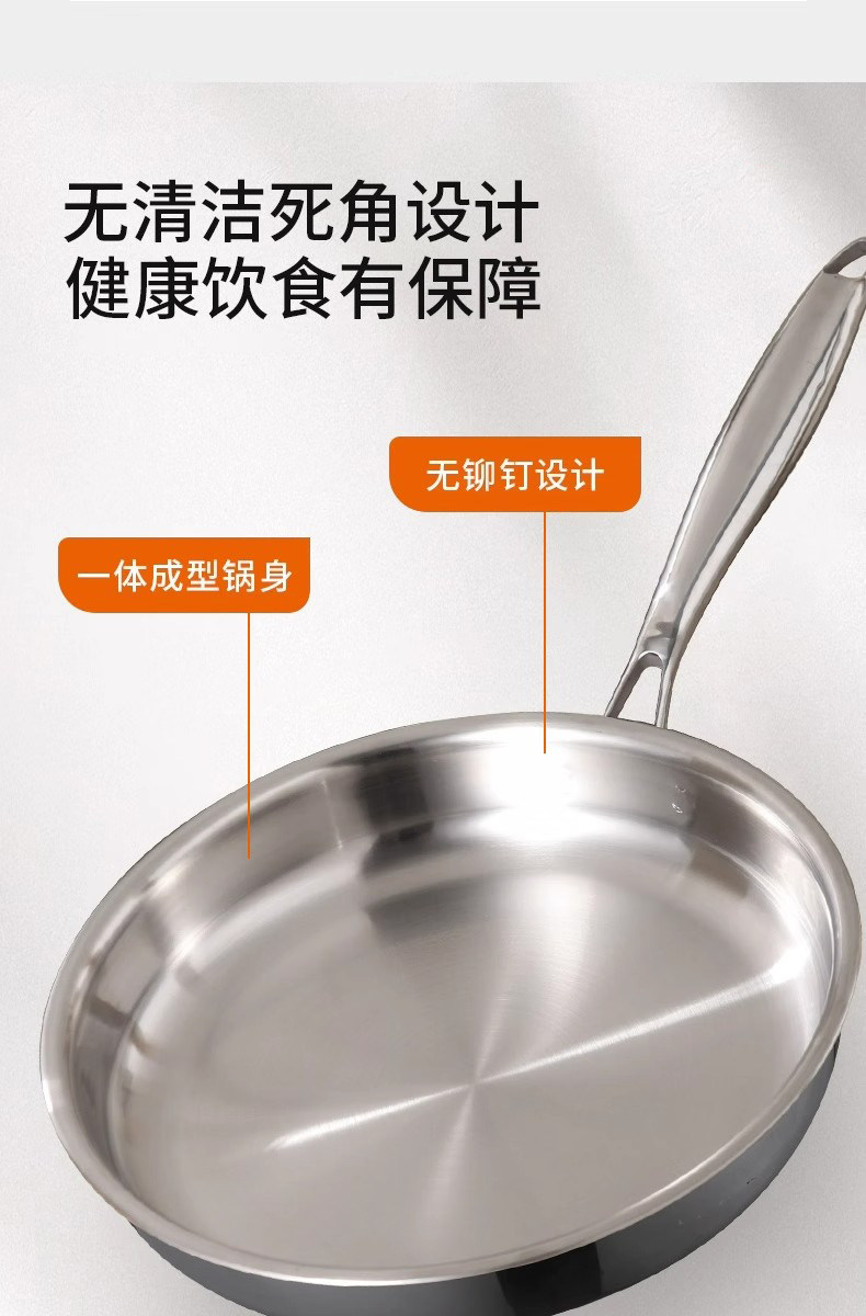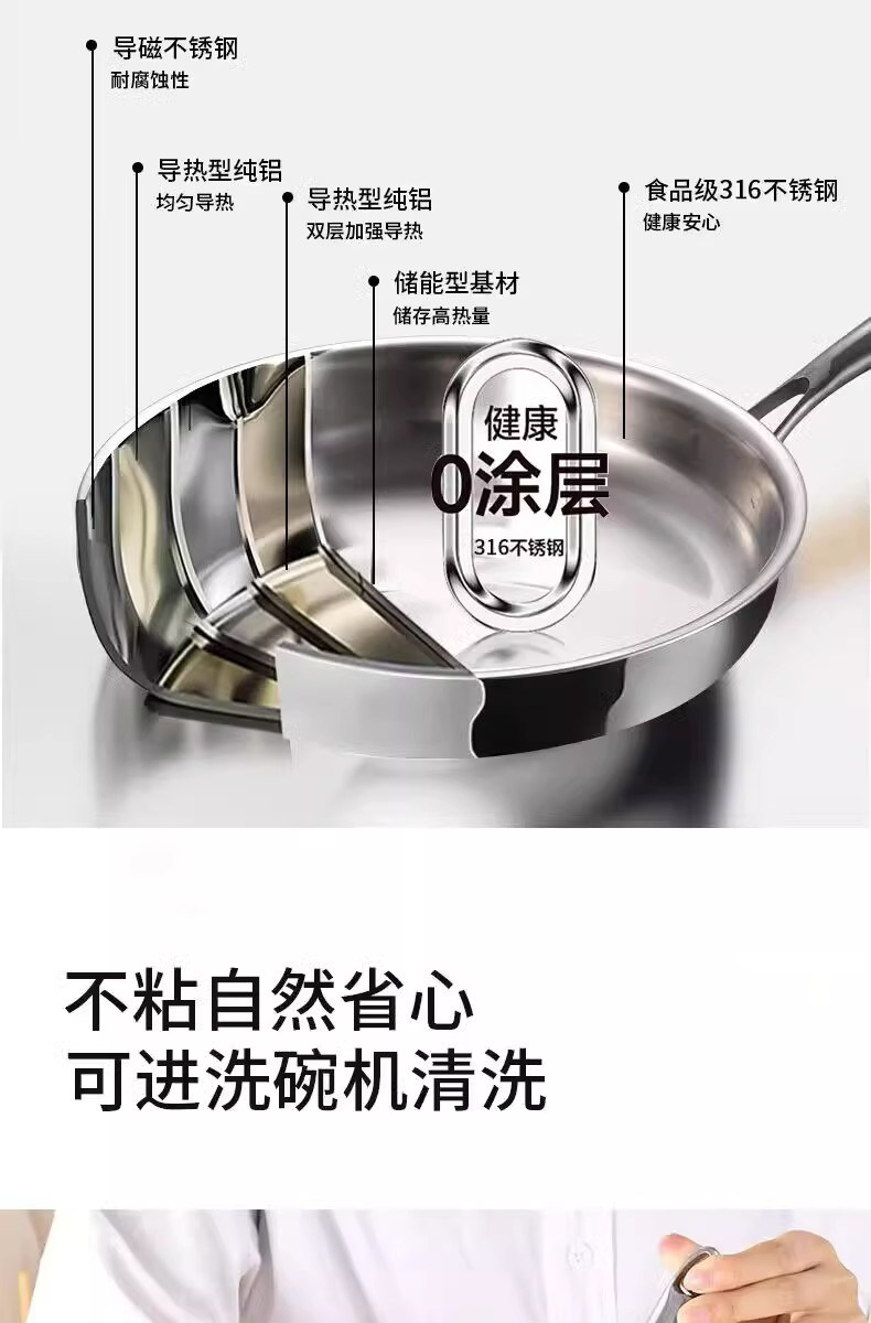 German Uncoated 316 Stainless Steel Frying Pan, Household Non-Stick Pan, Food-Grade Thickened Induction Cooker Steak Frying Pan