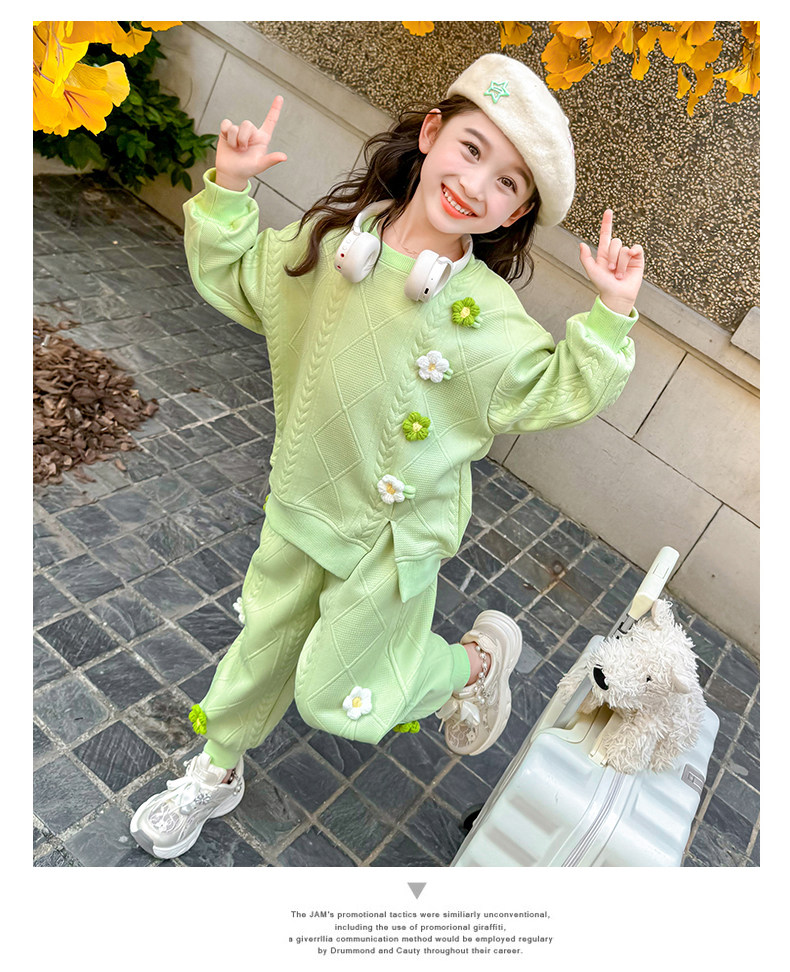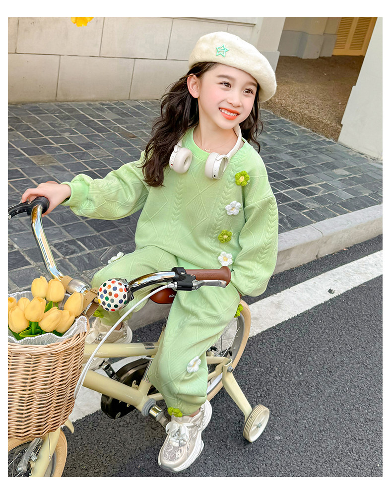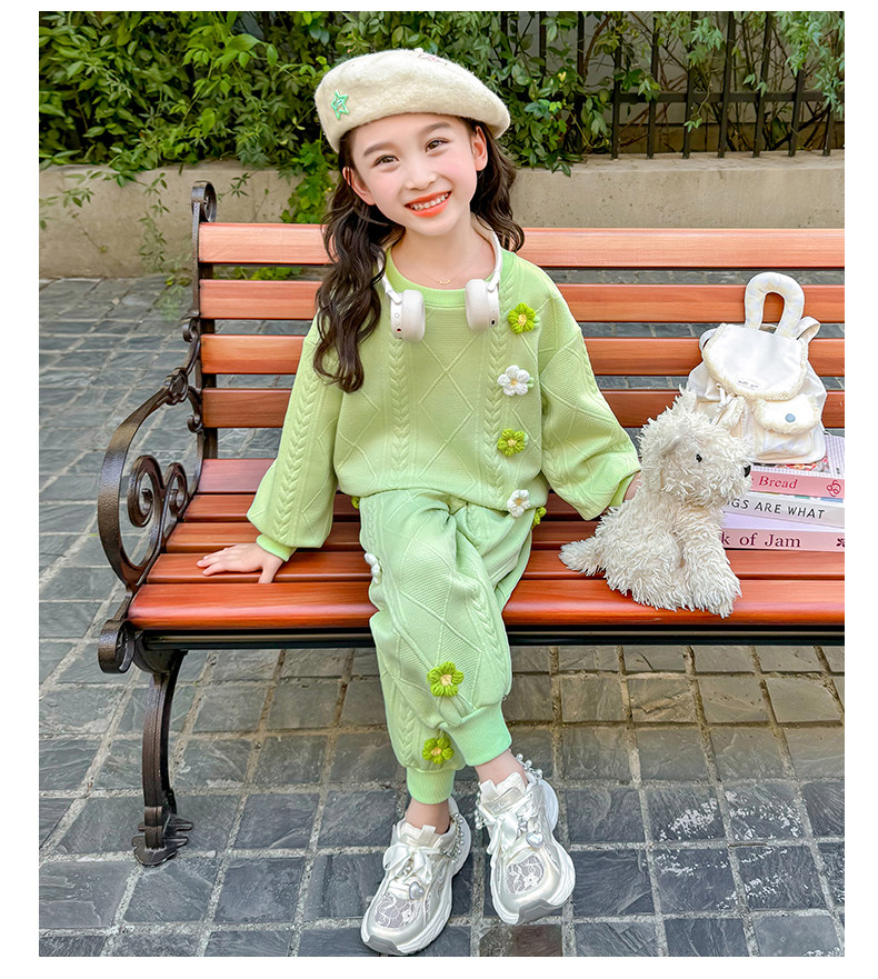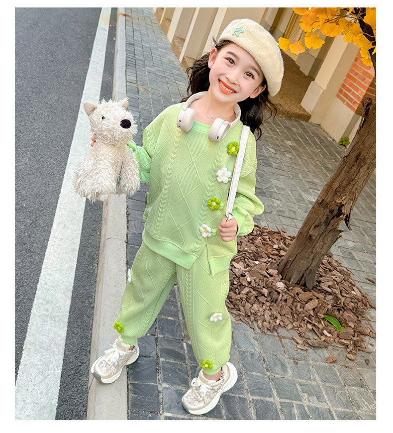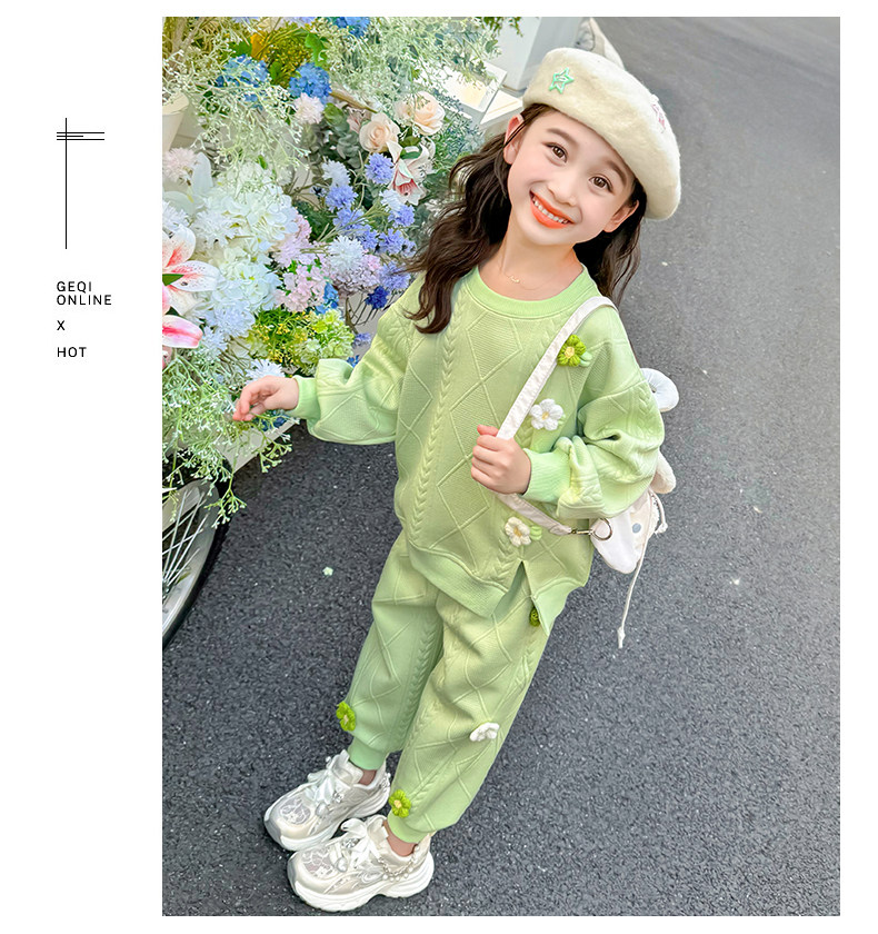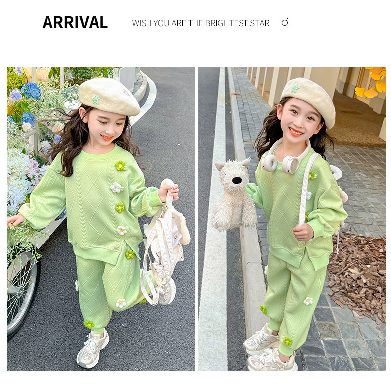Girls Suit Spring and Autumn Street 2025 New Baby Girl Fashionable Flower Sweatshirt Sports Casual Pants Two-Piece Trendy Set