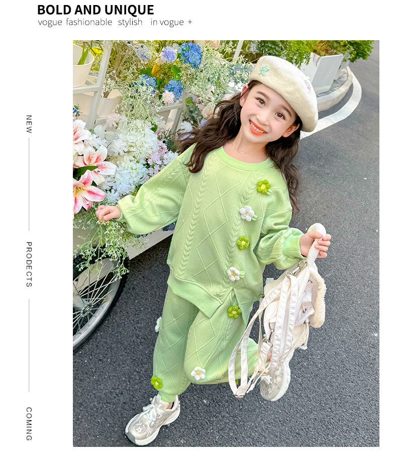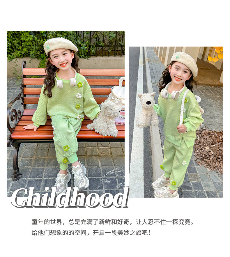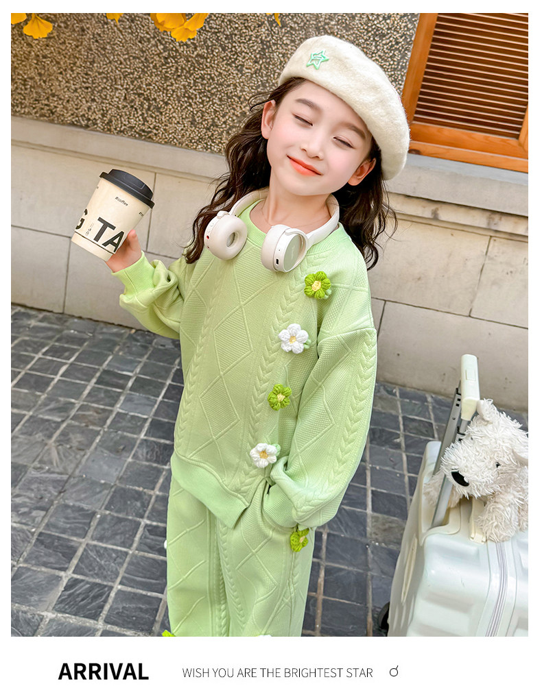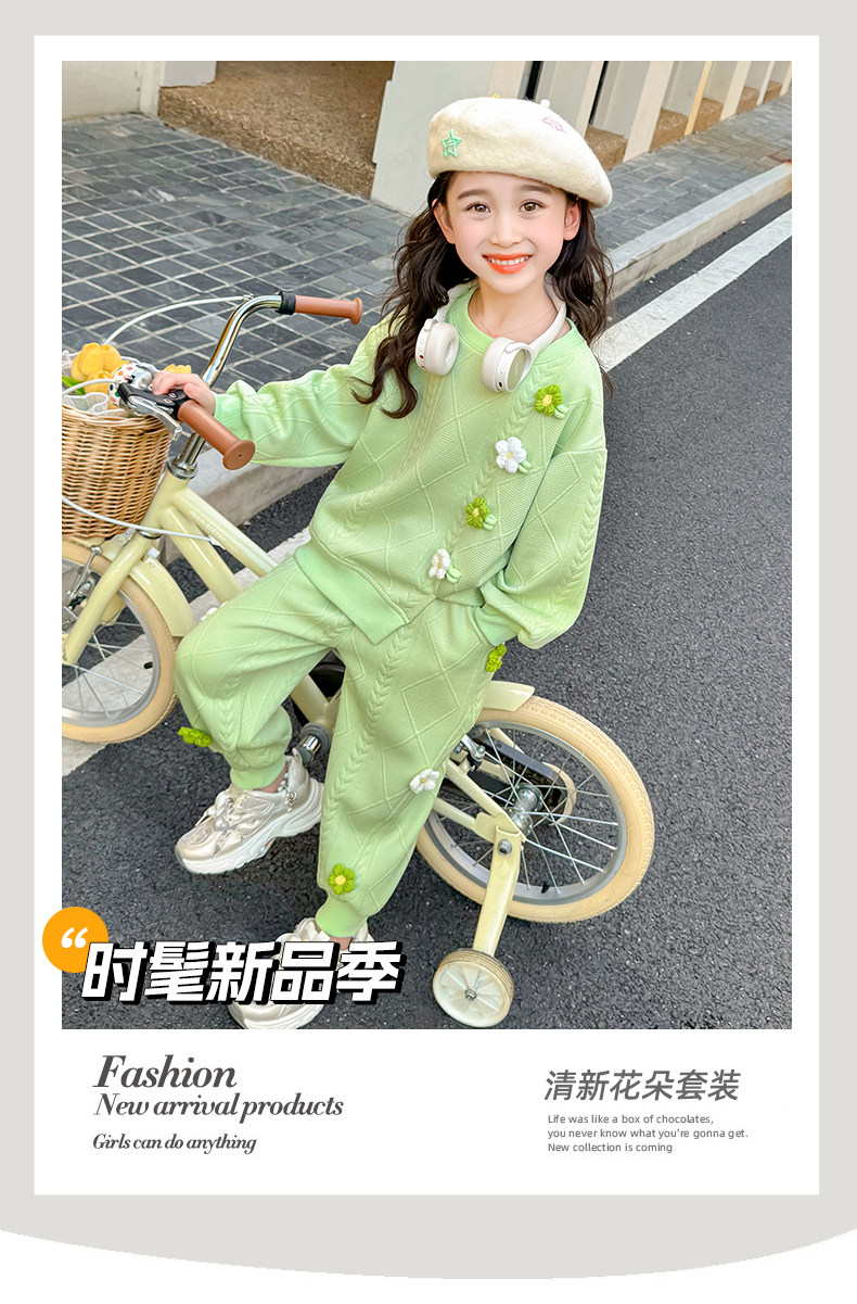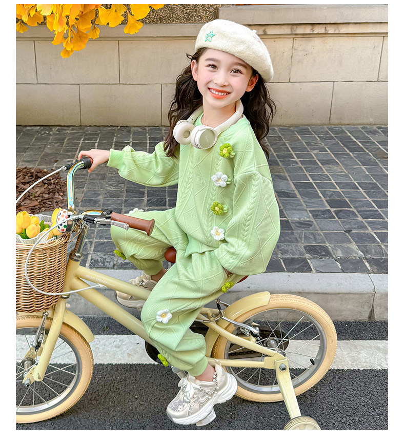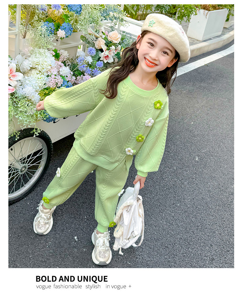 Girls Suit Spring and Autumn Street 2025 New Baby Girl Fashionable Flower Sweatshirt Sports Casual Pants Two-Piece Trendy Set