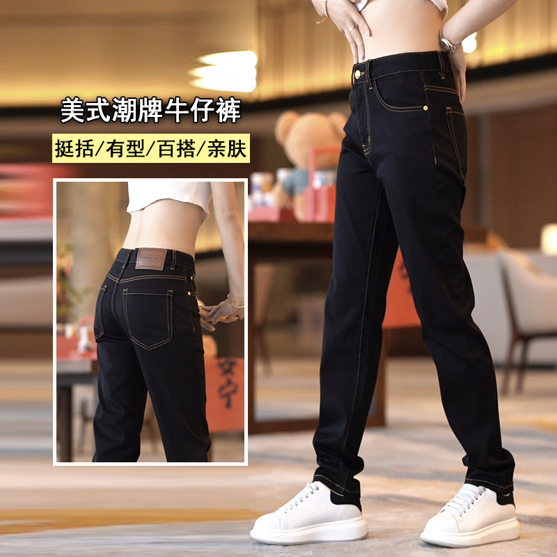 High-end European light luxury jeans for men, spring and summer trendy Korean style slim-fitting straight-leg pants, elastic slimming pencil pants
