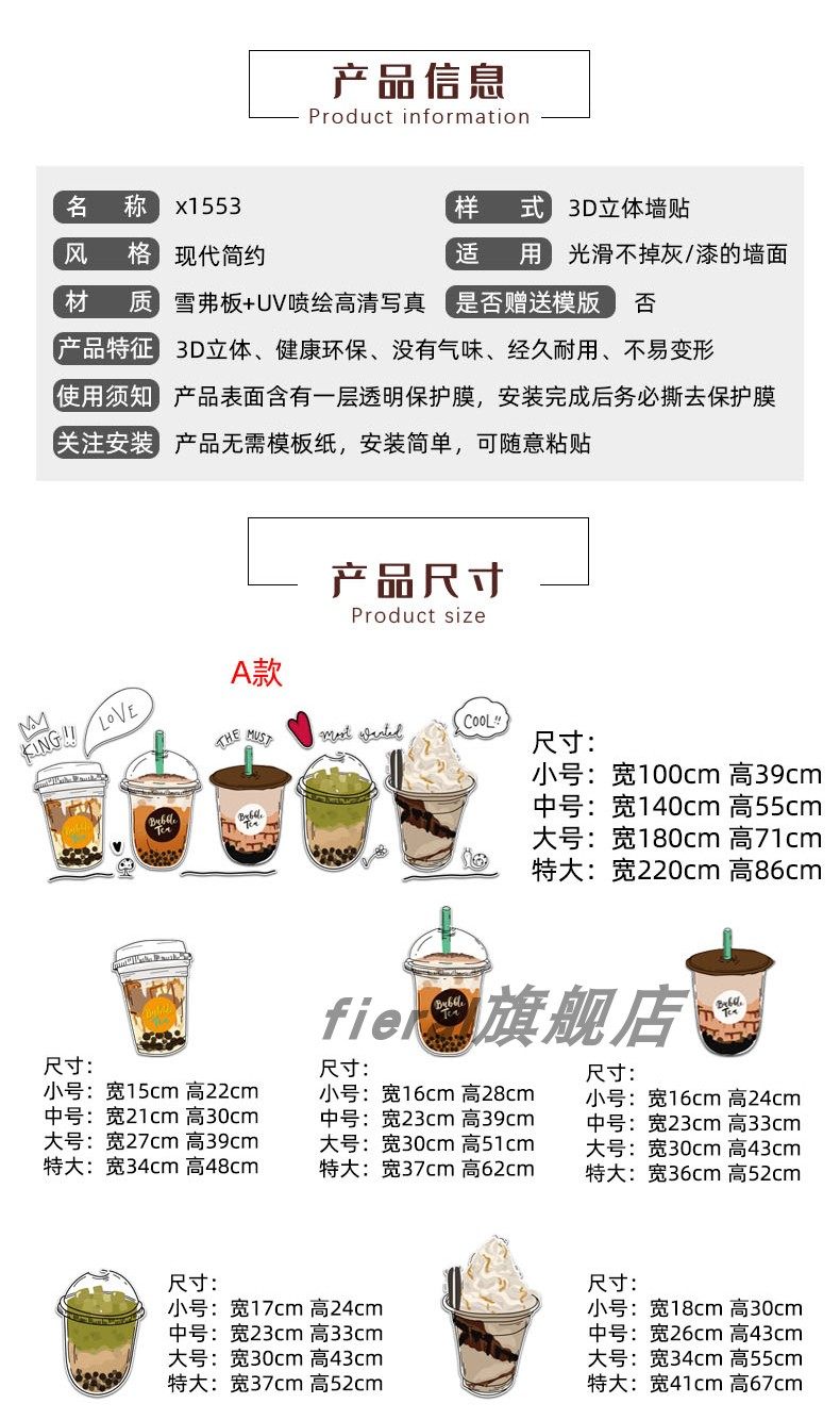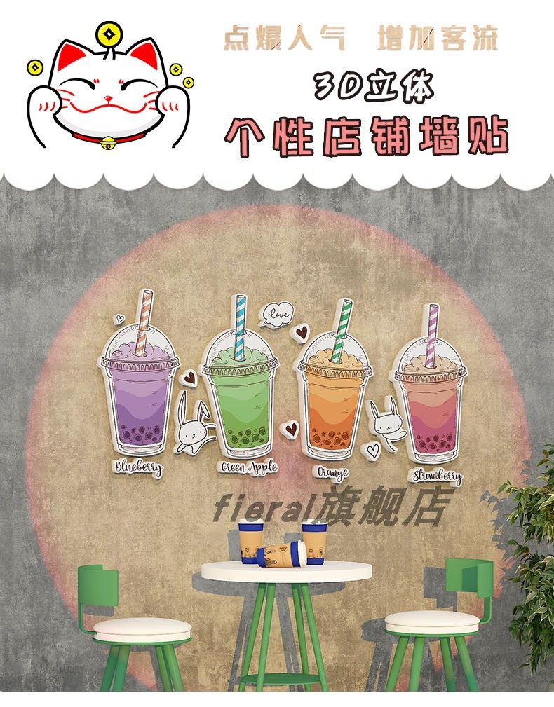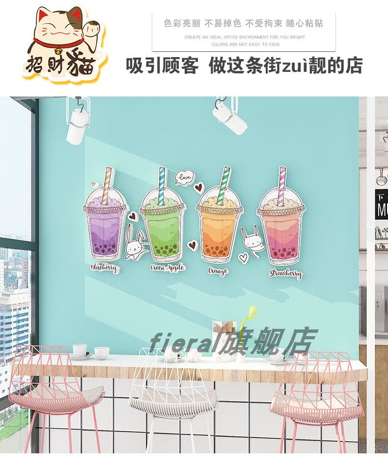 Trendy Milk Tea Shop Wall Decorations, Store Atmosphere Setup, Cake and Dessert Photo Props, Creative Wall Stickers