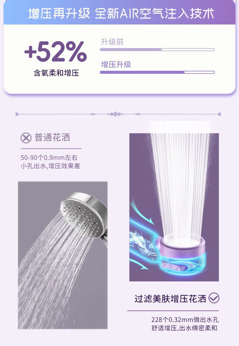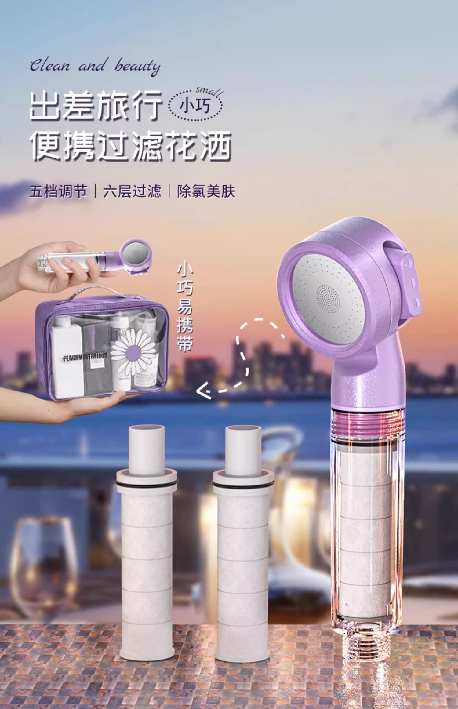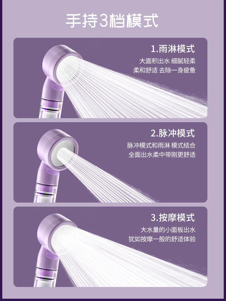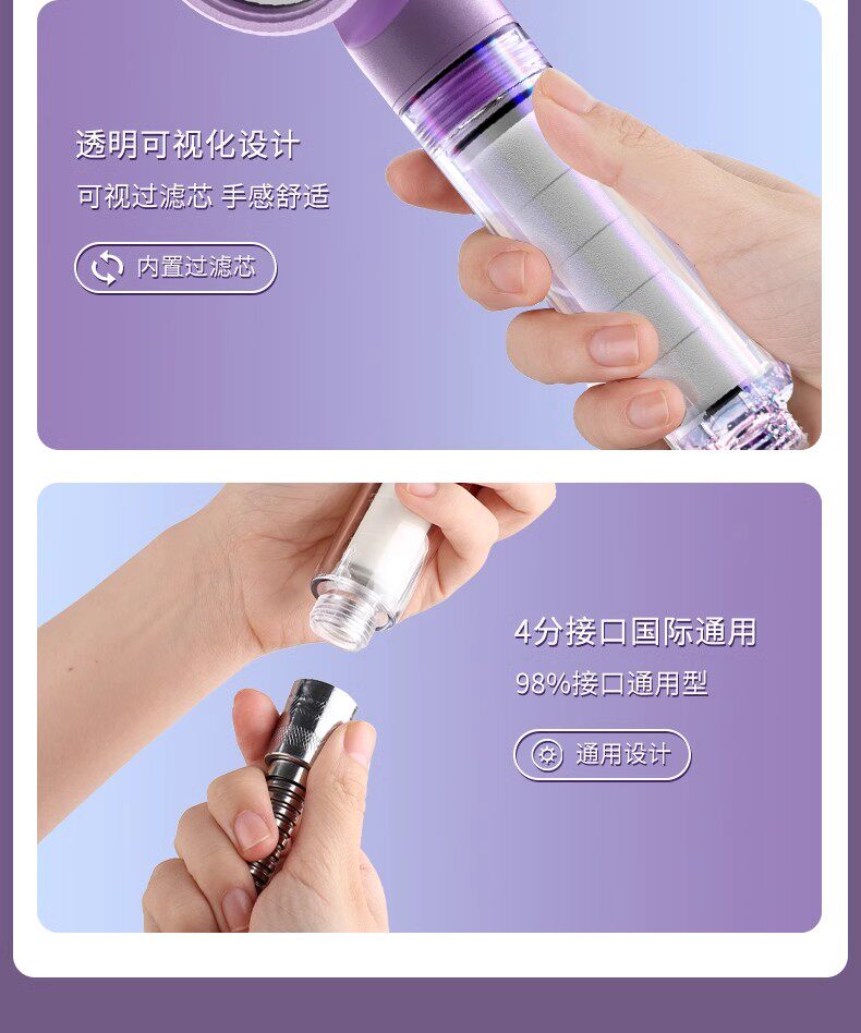 Sort by color Monet Purple Supercharged Filter Version-Travel Portable Shower (comes with filter element),Gentle Peach Supercharged Filter Version-Travel Portable Shower (comes with filter element),Yaguang White Supercharged Filter Version-Travel Portable Shower (comes with filter element),Free toiletry storage bag, Monet Purple Set A, pressurized filter showerhead + 1.5m hose (free filter element*4),Free toiletry storage bag Monet Purple Set B Booster filter shower + punch-free stand (free filter element*4),Free toiletry storage bag, Monet Purple Set C, pressurized filter showerhead + 1.5m hose + bracket (free filter element*4),Free toiletry storage bag, Gentle Peach Set A, pressurized filtered shower head + 1.5m hose (free with 4 filter elements),Free toiletry storage bag, Soft Peach Set B, Boosted filter showerhead + punch-free stand (free of 4 filter elements),Free toiletry storage bag, Soft Peach Set C, pressurized filter showerhead + 1.5m hose + bracket (free filter element*4),Free toiletry storage bag, Yaguang White Set A, pressurized filter showerhead + 1.5m hose (free filter element*4),Free toiletry storage bag Yaguang White Set B Booster filter shower + punch-free bracket (free filter element*4),Free toiletry storage bag, Yaguang White Set C, pressurized filter showerhead + 1.5m hose + bracket (free filter element*4),Original filter element-10 pack