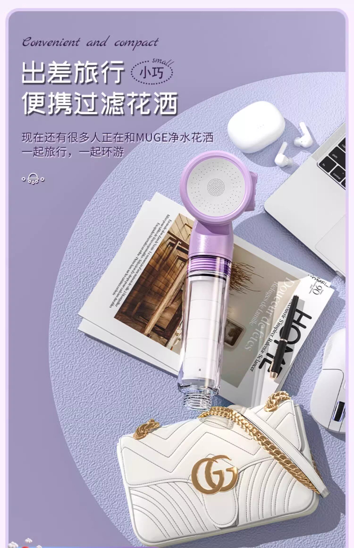 Travel shower filter hotel portable mini shower head general travel essential supplies