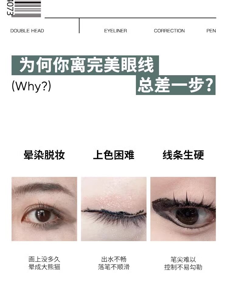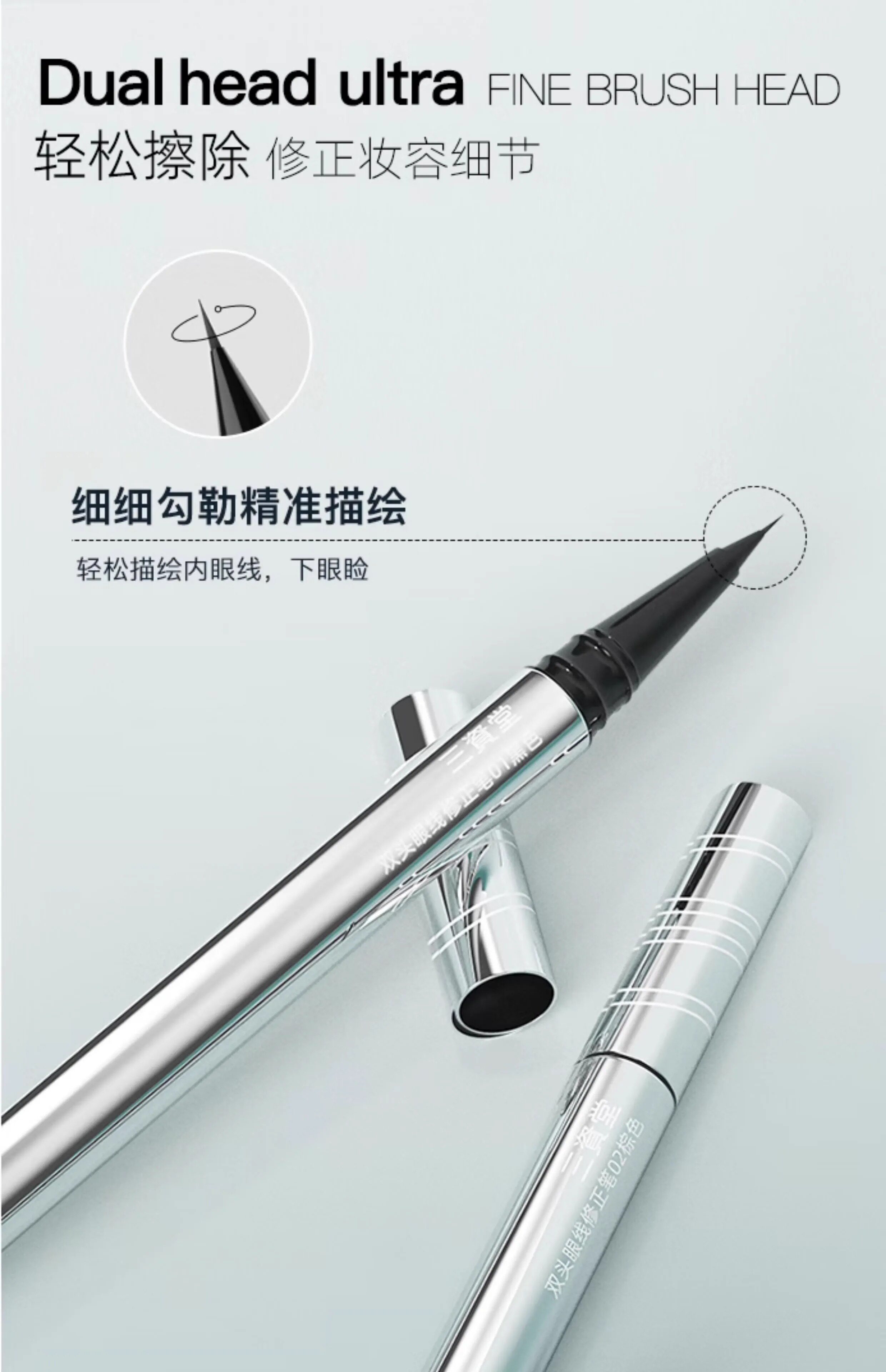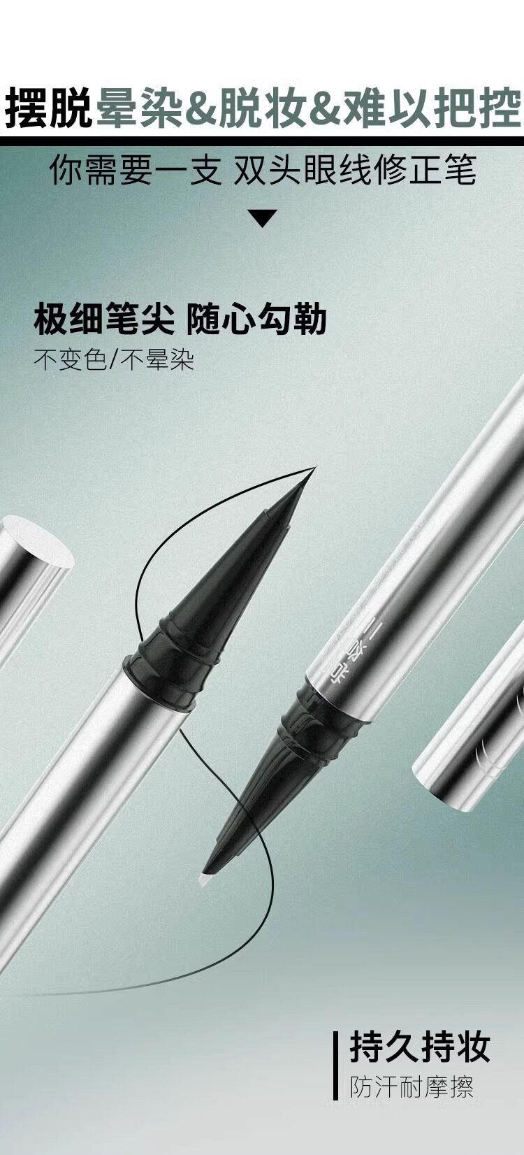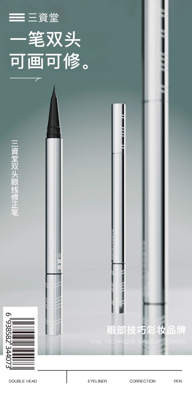 Sanzido double-ended ultra-fine black eyeliner pen, long-lasting, non-smearing, waterproof, beginners' natural eye makeup