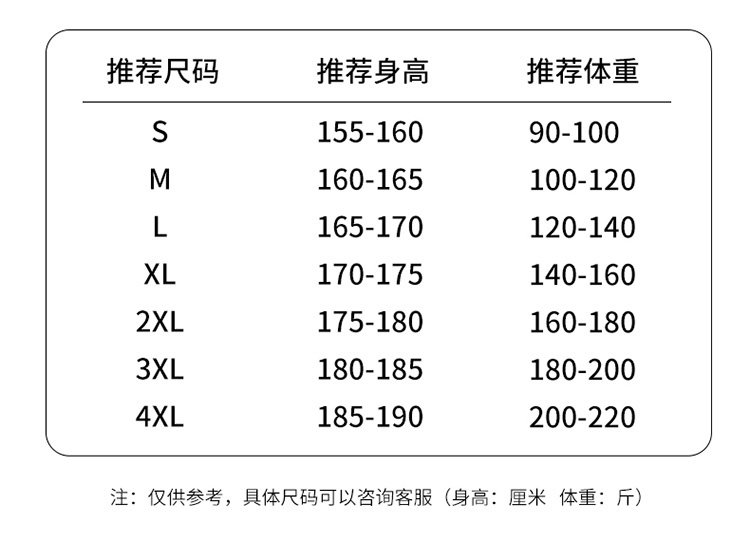 China (cm) 165 / 88-90 170 / 96-98 175 / 108-110 180 / 118-122 185 / 126-130