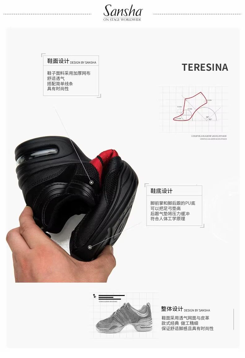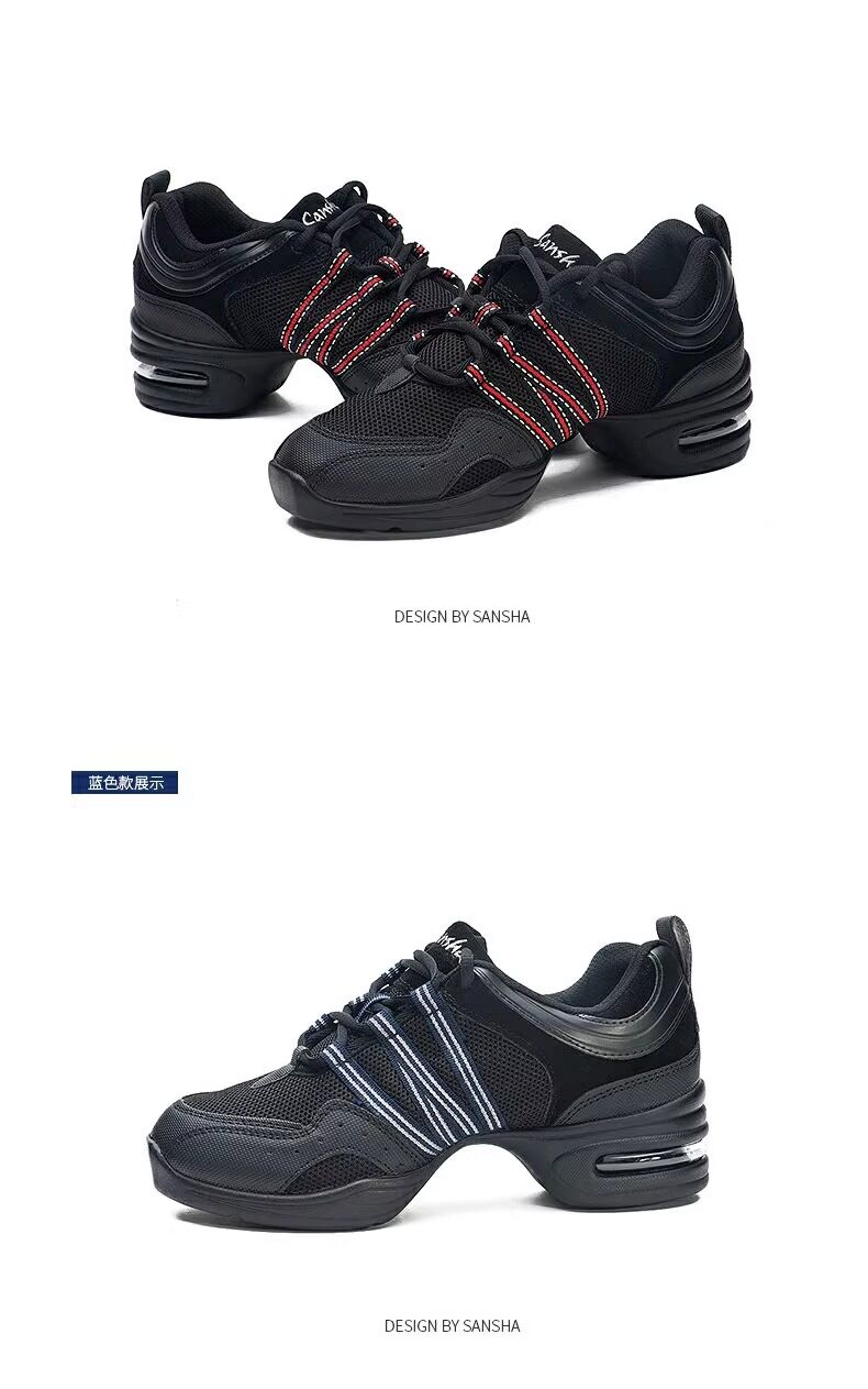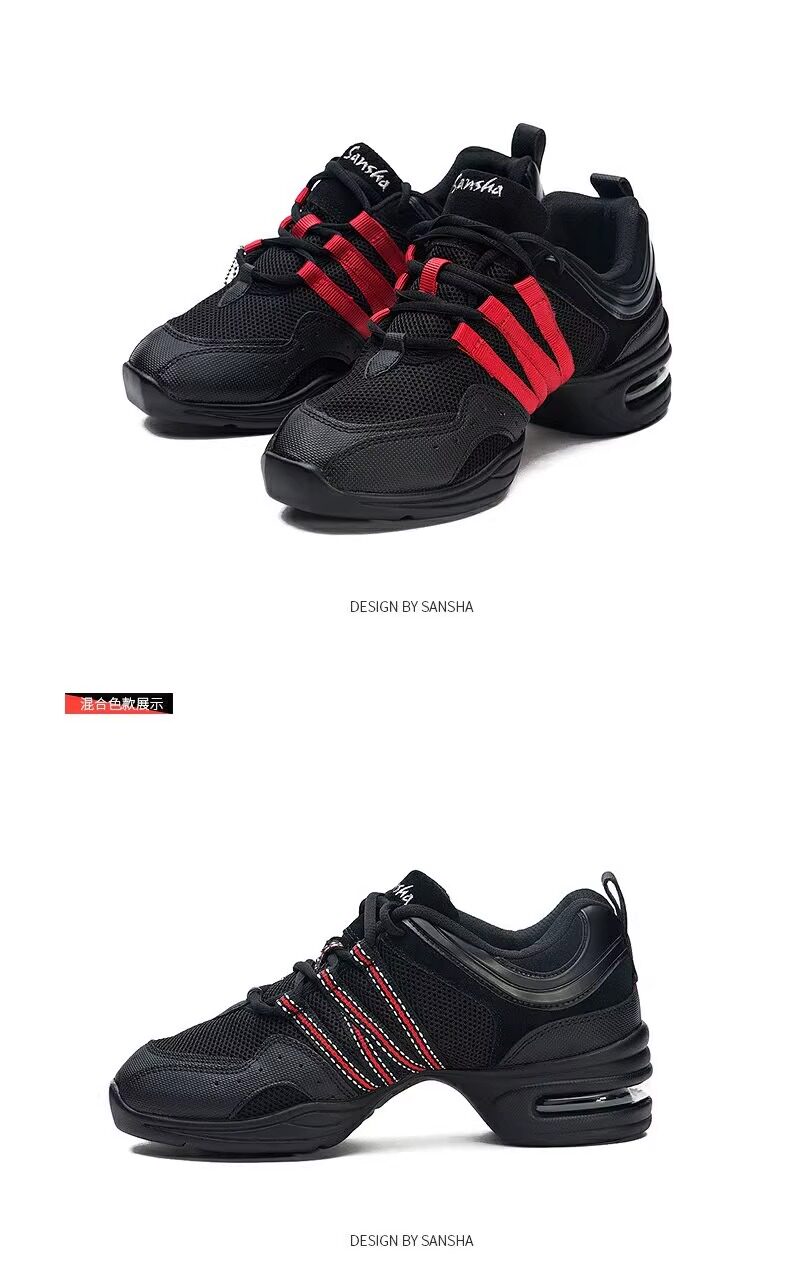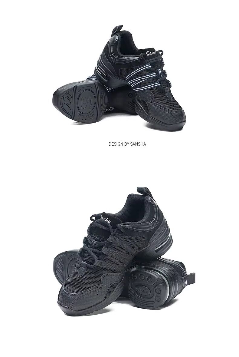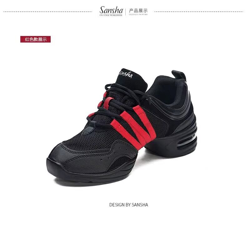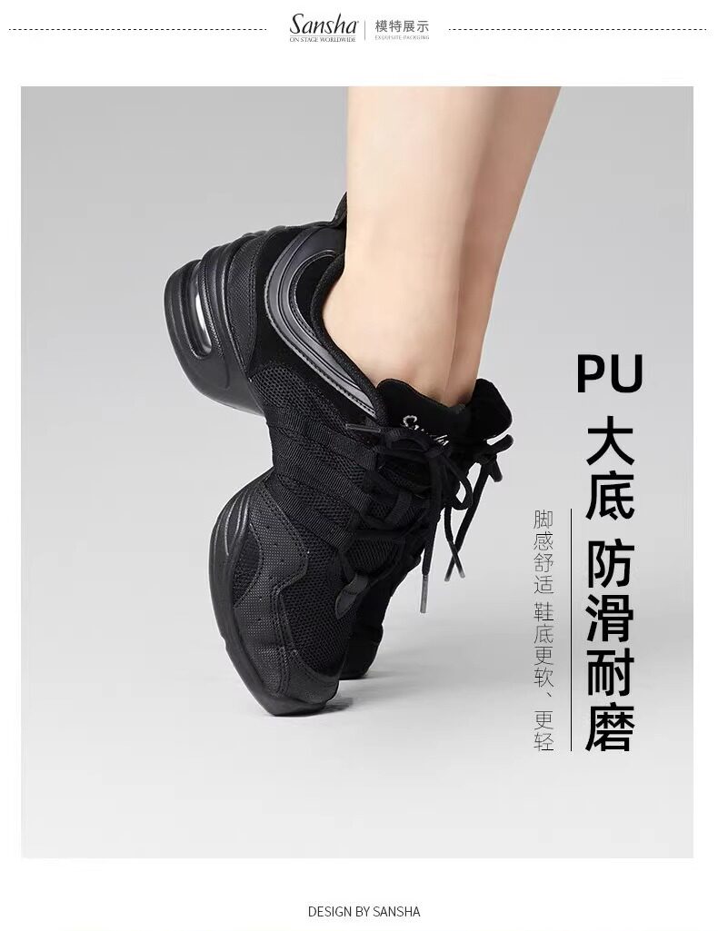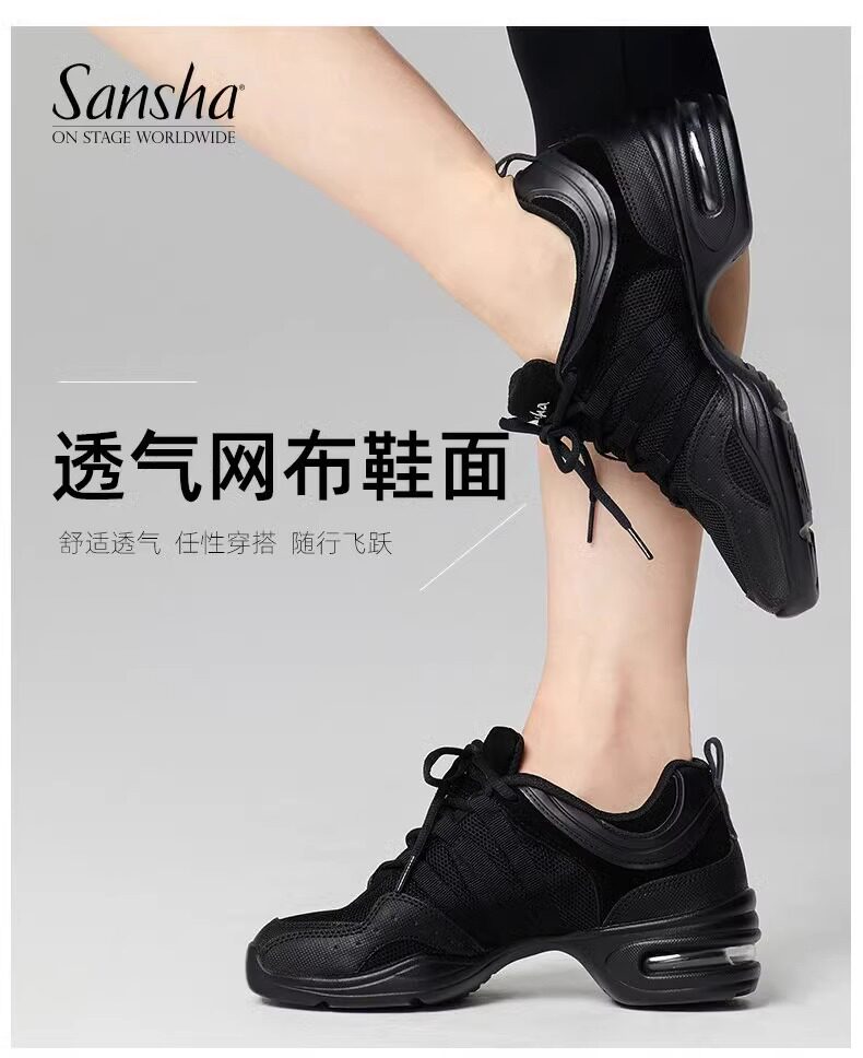Sansha Sansha Jazz Dance Shoes Women's Soft Sole Mesh Modern Square Dance Shoes Breathable Dance Shoes Fitness Mid-Heel