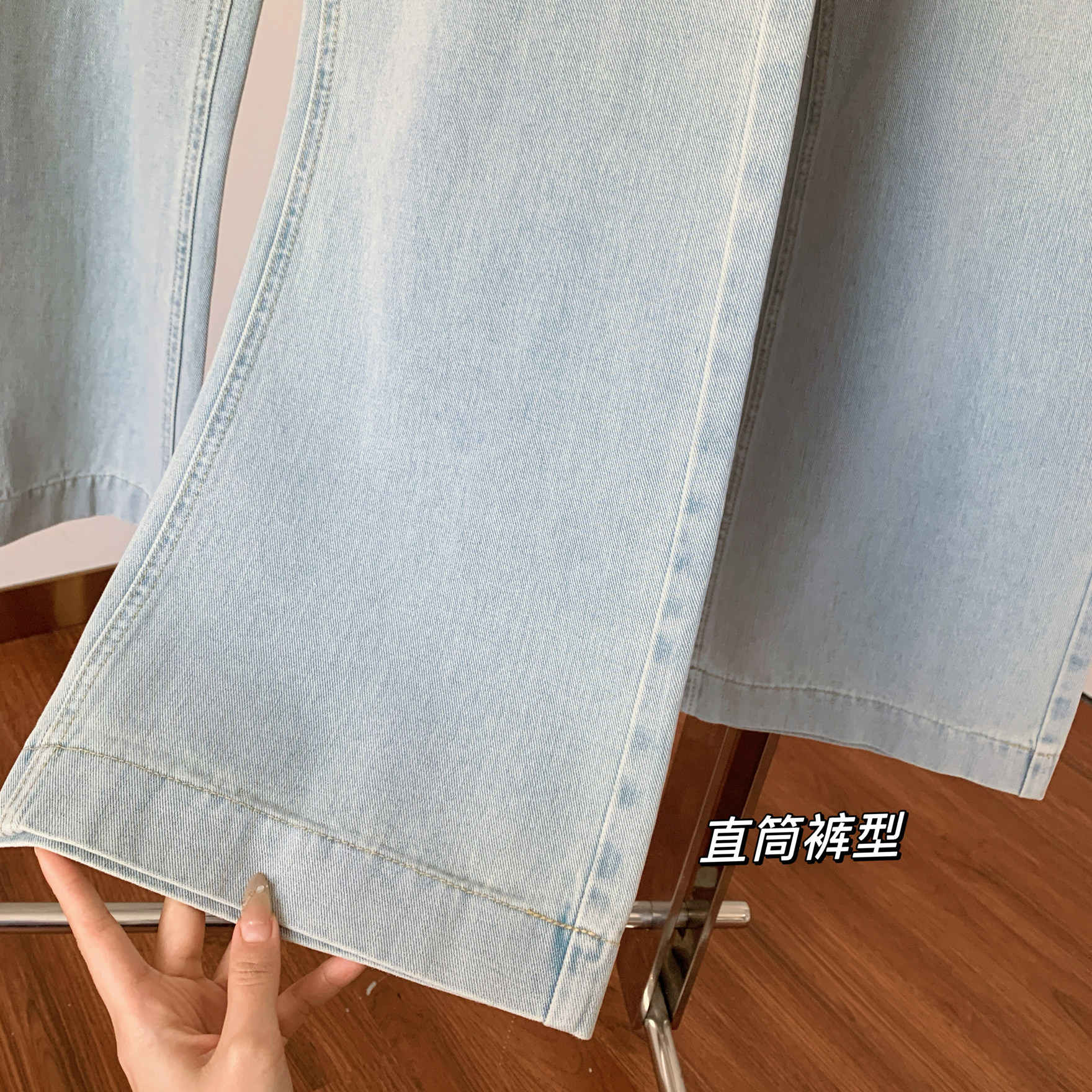 Lin Xi Xi's Special Blend of Milk Blue Baby Jeans, Casual, Loose, Slimming, Comfortable Straight-Leg Jeans for Women