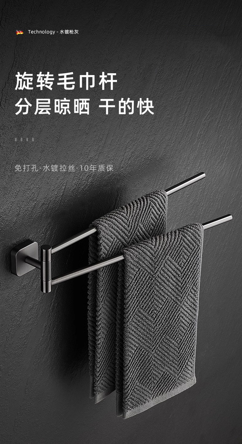 Italian Aisino Rotating Towel Rack All-Copper Movable Double-Rod Towel Rack for Bathroom and Shower Towel Storage Rack