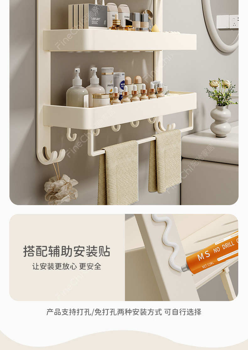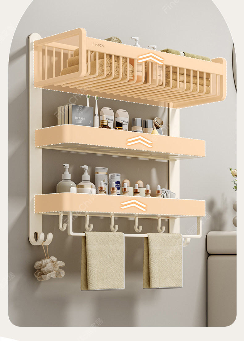 Finechi Cream Style Bathroom Shelf Towel Rack No-Drill Wall-Mounted Bath Towel Holder Space Aluminum