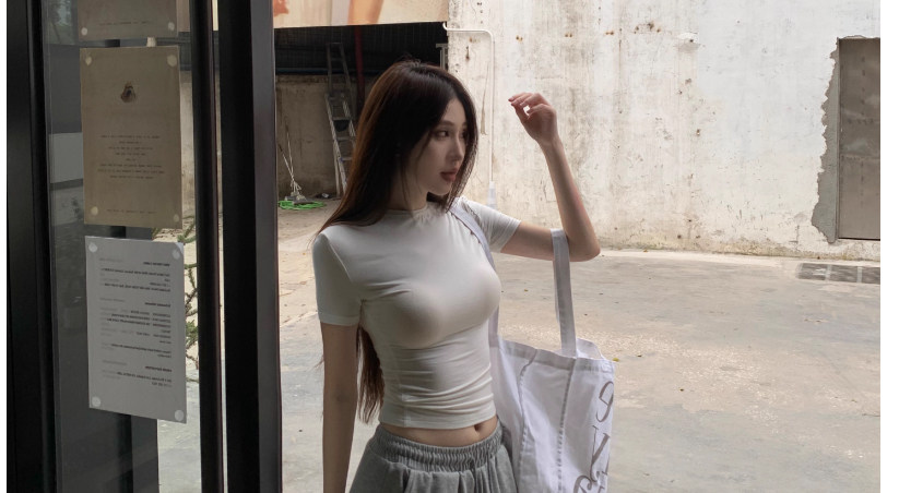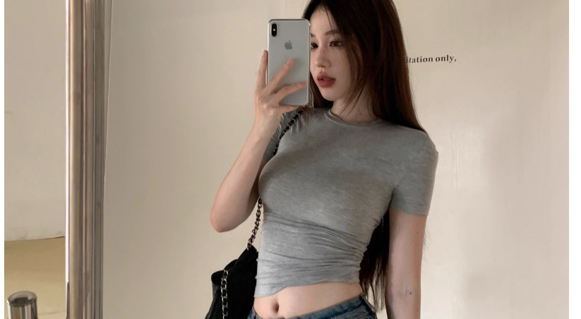 Body-Shaping Elastic Short-Sleeved T-Shirt for Women, Spring and Summer 2025 New Style, European and American Hot Girl Tight-Fitting Slimming Versatile Top